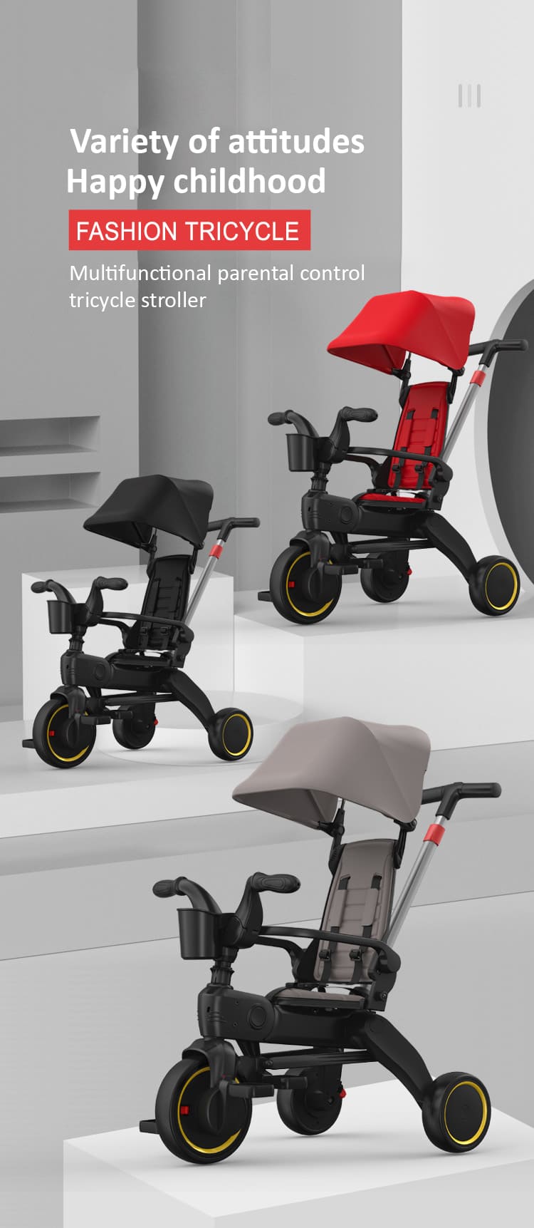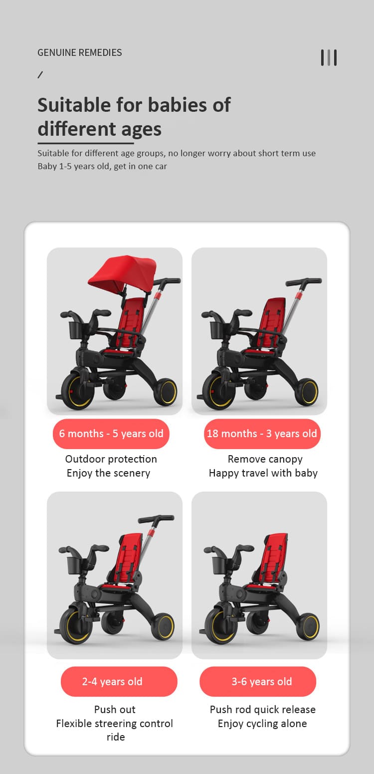 StarAndDaisy 5-in-1 Compact Multifunctional Foldable Children’s Tricycle/ Trikes for Kids with Canopy with Dual Storage Basket & Ultra Soft Cushion Seat with Seat Belt, Footrest, Parental Control Handle, Baby Trike for Boys Girls of 1.5 to 5 Years (Gray)