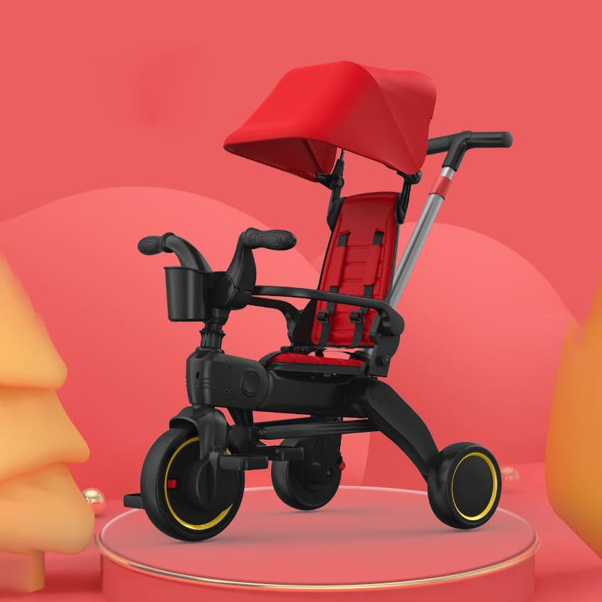 StarAndDaisy 5-in-1 Compact Multifunctional Foldable Children’s Tricycle/ Trikes for Kids with Canopy with Dual Storage Basket & Ultra Soft Cushion Seat with Seat Belt, Footrest, Parental Control Handle, Baby Trike for Boys Girls of 1.5 to 5 Years (Red)