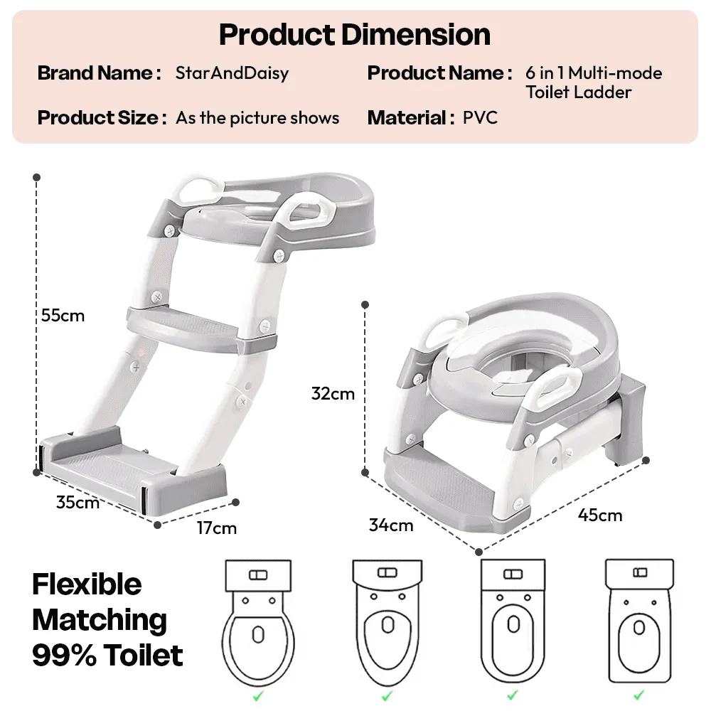 StarAndDaisy 6 in 1 Multi-Mode Toilet Ladder for Kids with Step Stool, Potty Seat & Adjustable Height, Foldable Toddler Toilet Training Seat – Grey