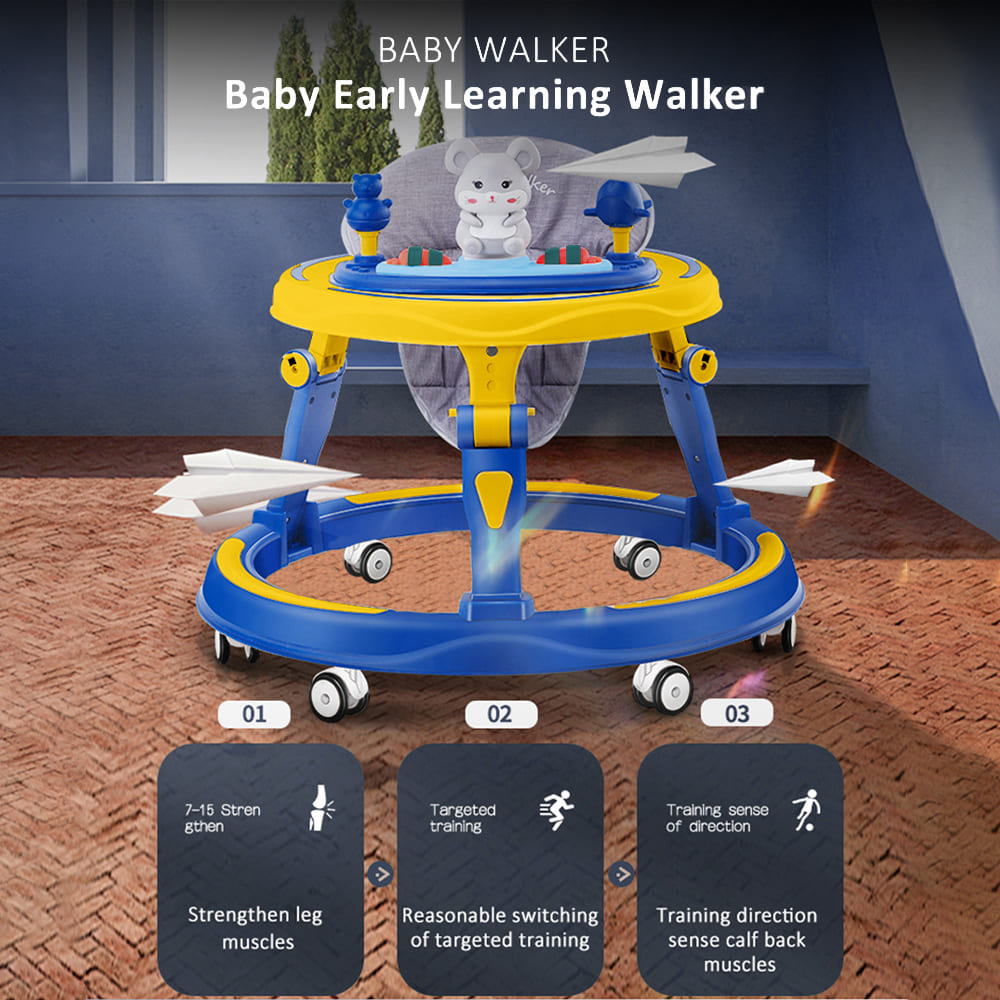 StarAndDaisy Multifunctional Intelligent Early Education Baby Push Walker with Toy Tray (Dark Blue & Yellow)