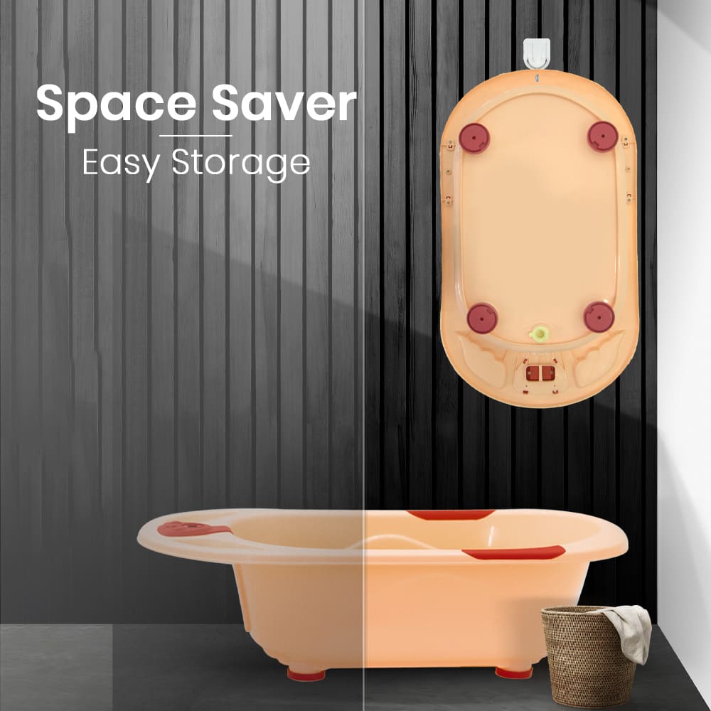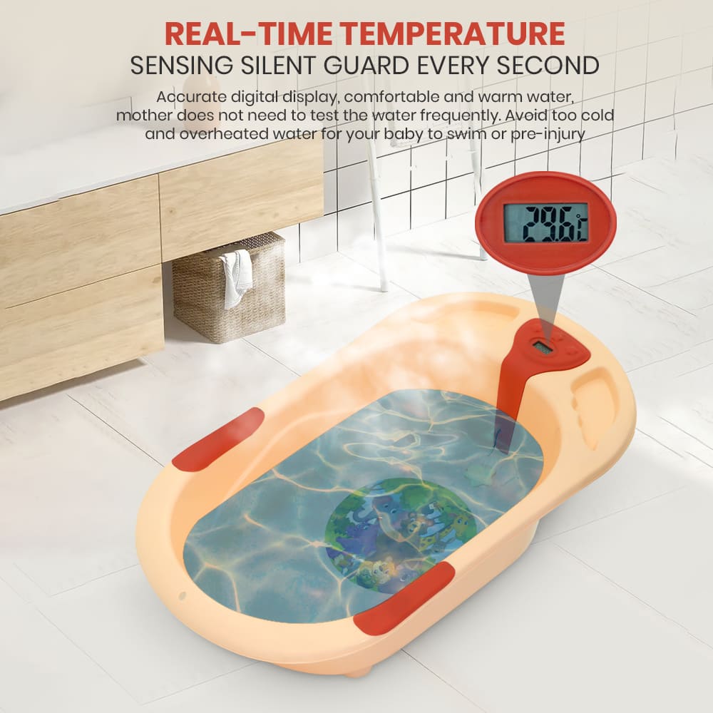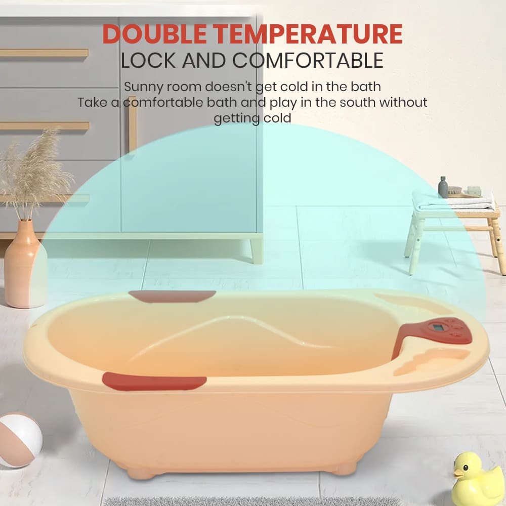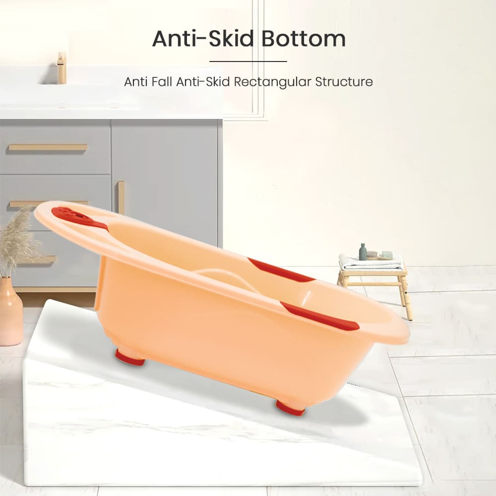 StarAndDaisy Baby Bath Tub with Temperature Sensor and Wheels for New Born Baby Kids of 0 to 3 Years Anti-Slip Kids Bathtub for Baby Shower (Orange)