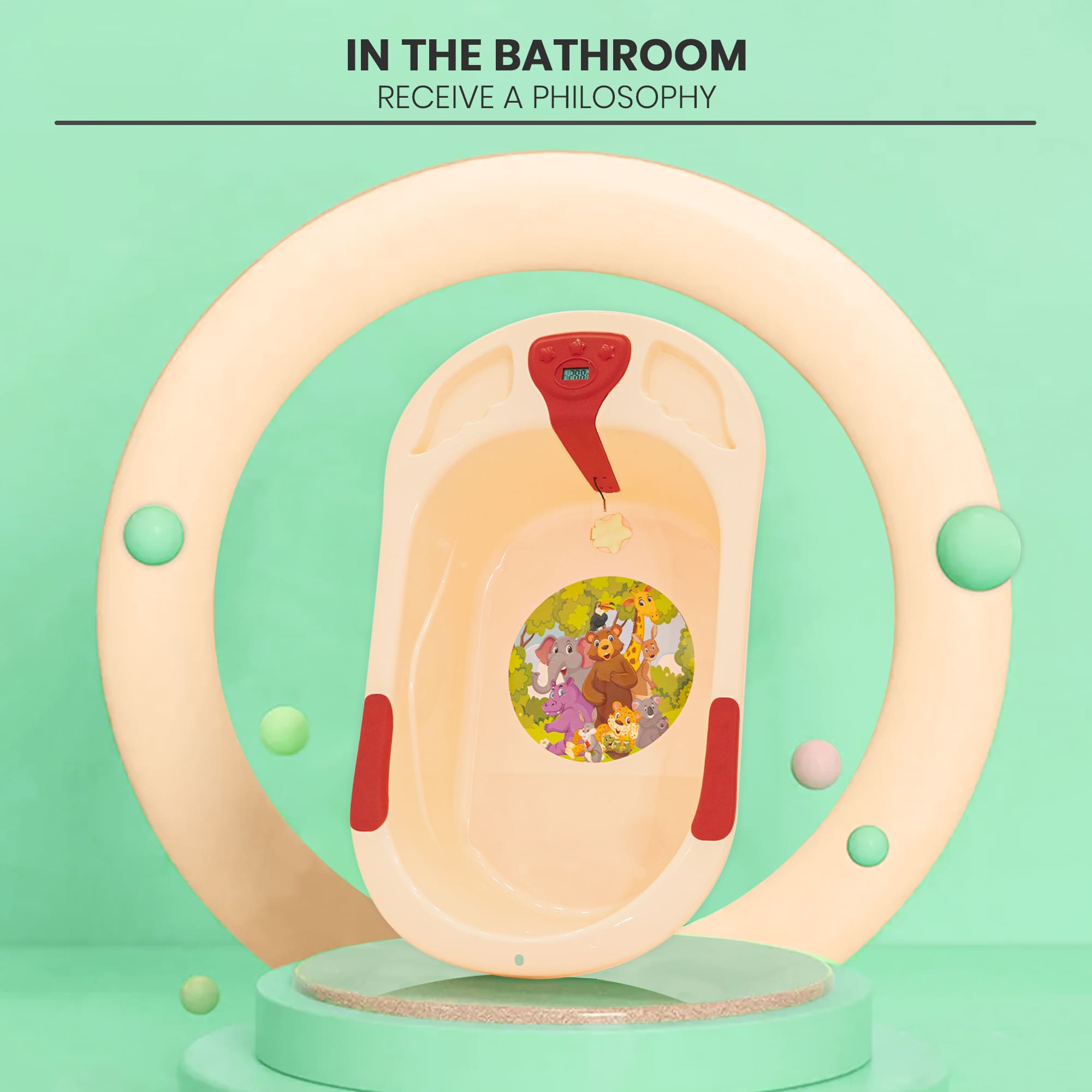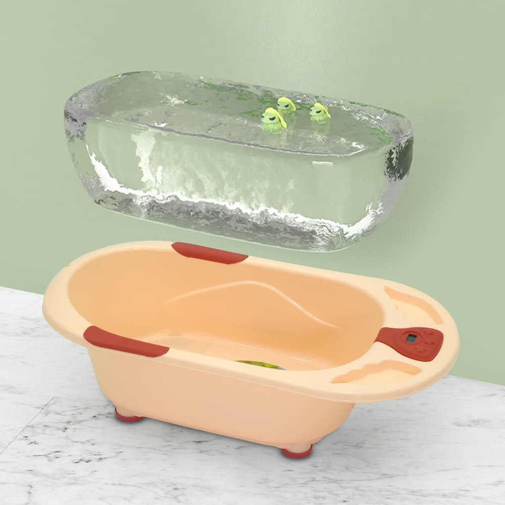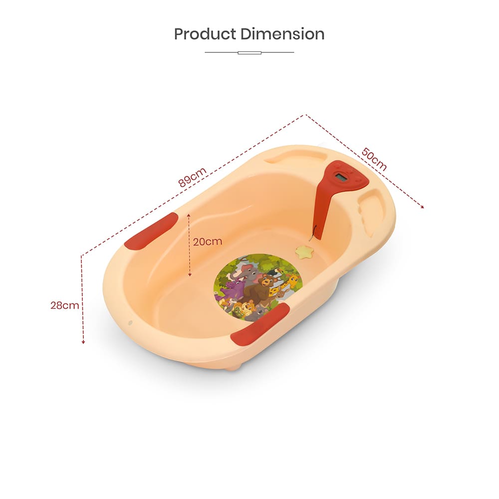 StarAndDaisy Baby Bath Tub with Temperature Sensor and Wheels for New Born Baby Kids of 0 to 3 Years Anti-Slip Kids Bathtub for Baby Shower (Orange)