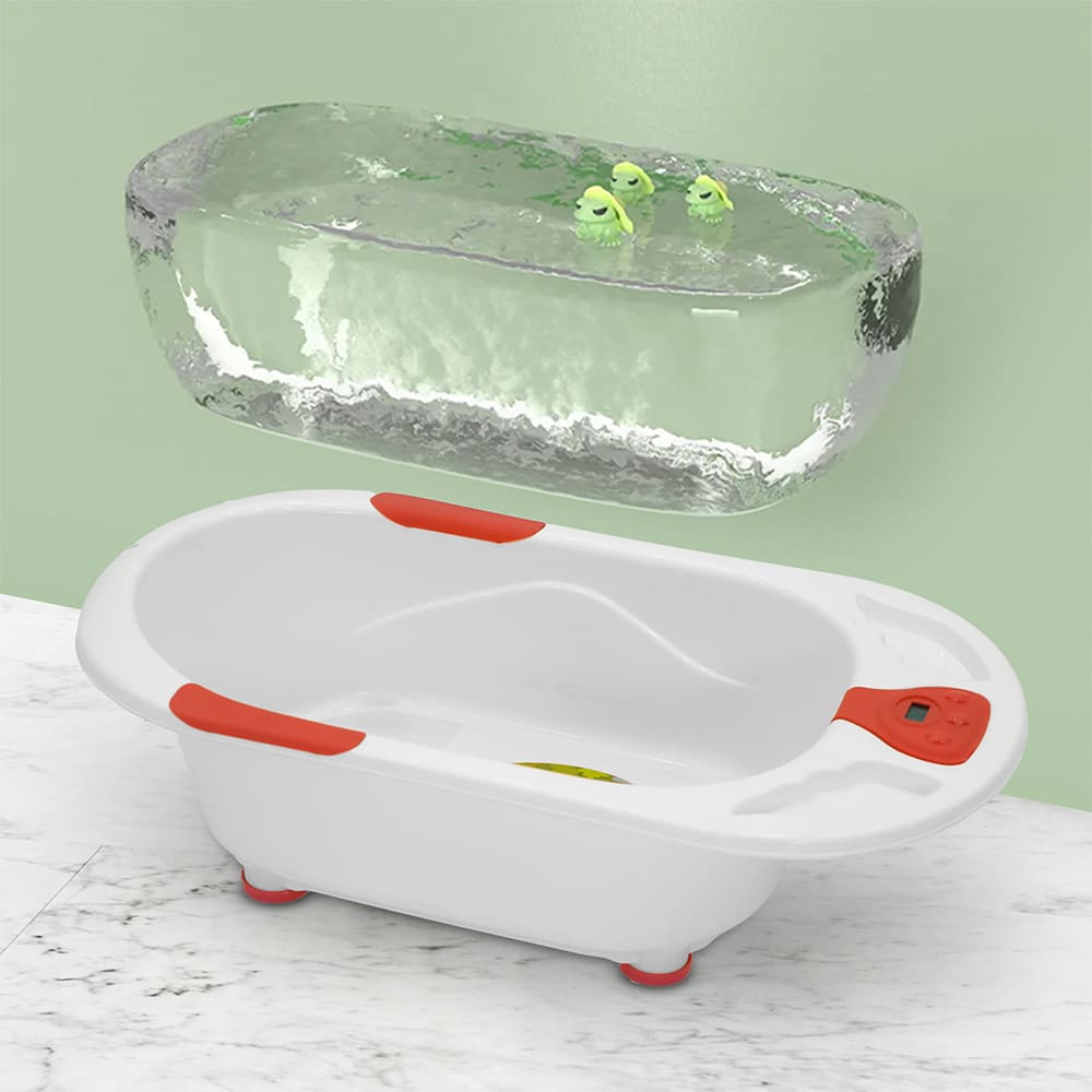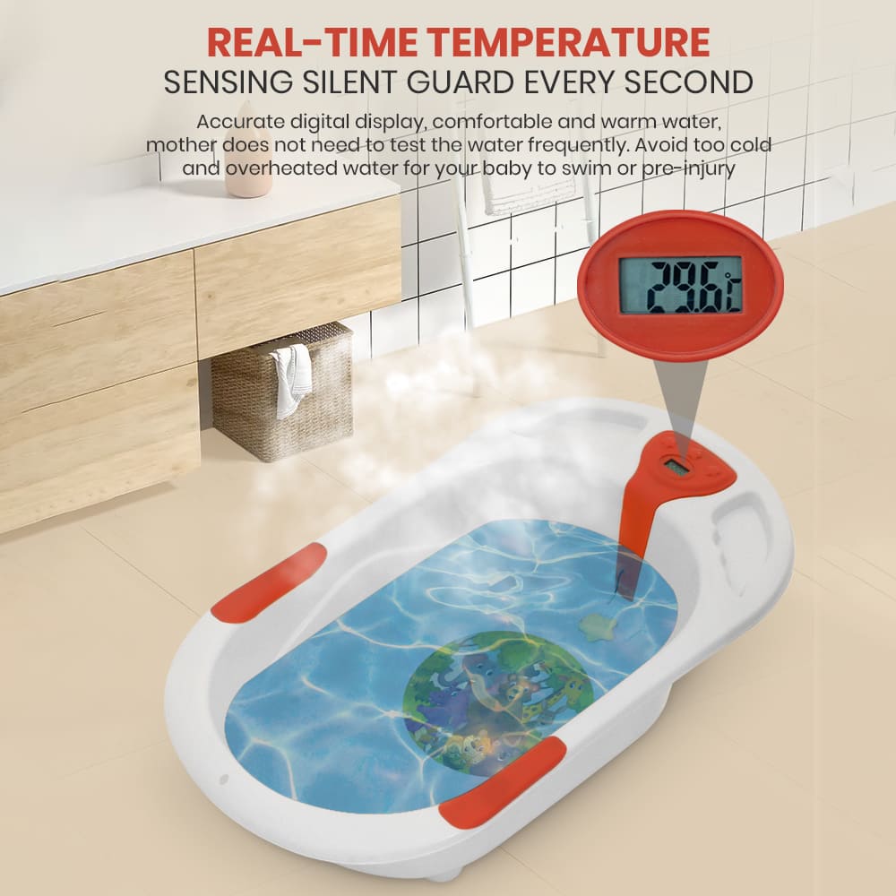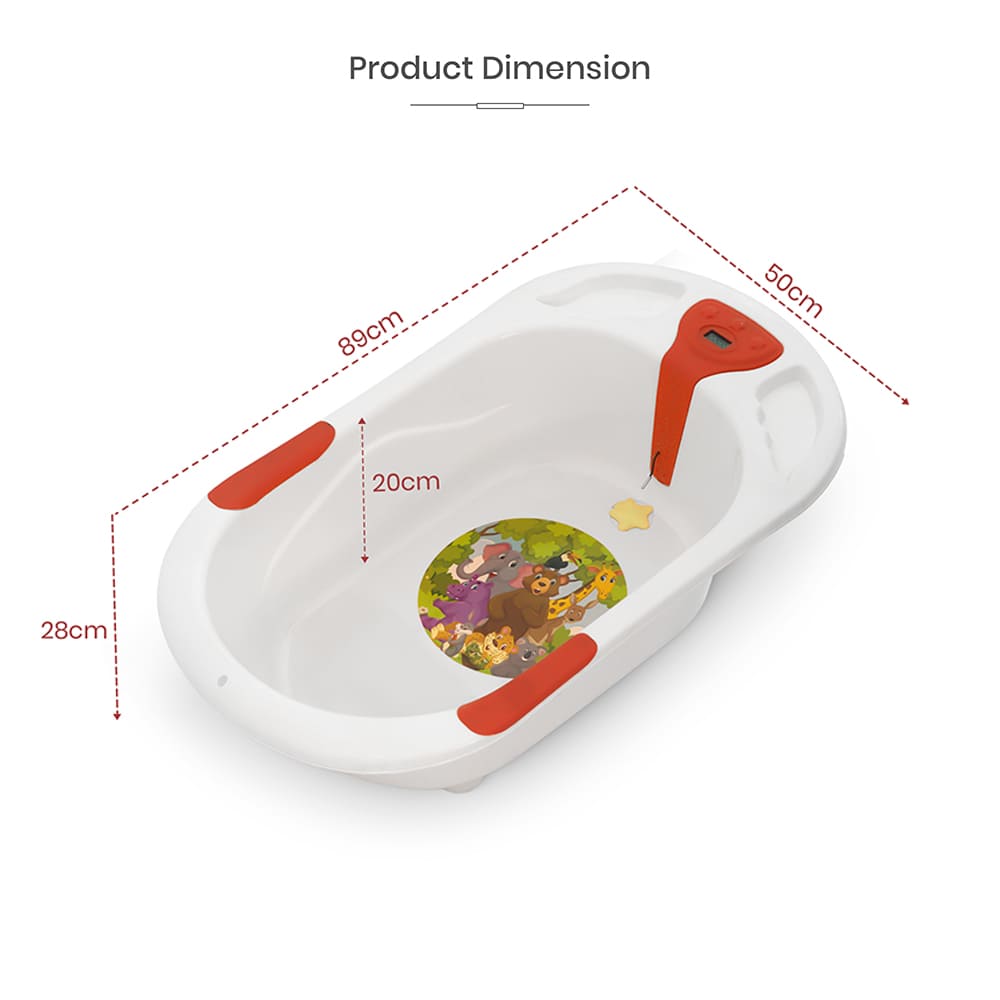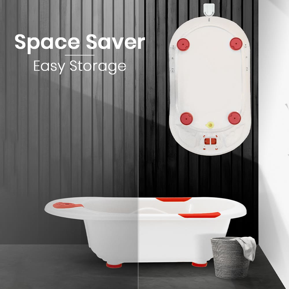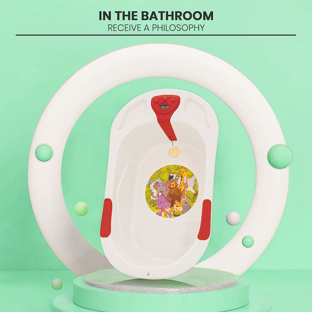 StarAndDaisy Baby Bath Tub with Temperature Sensor and Wheels for New Born Baby – White & Red