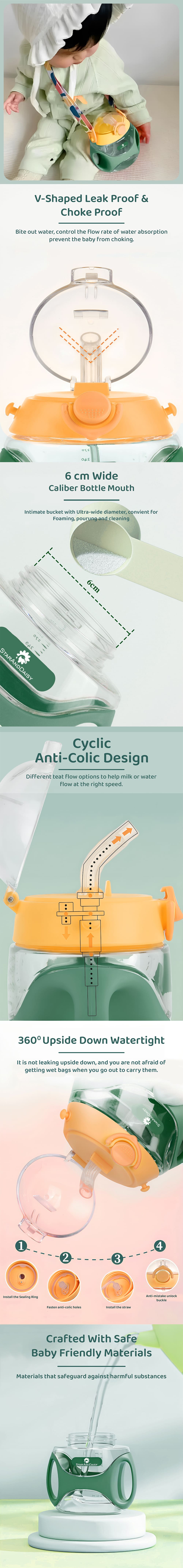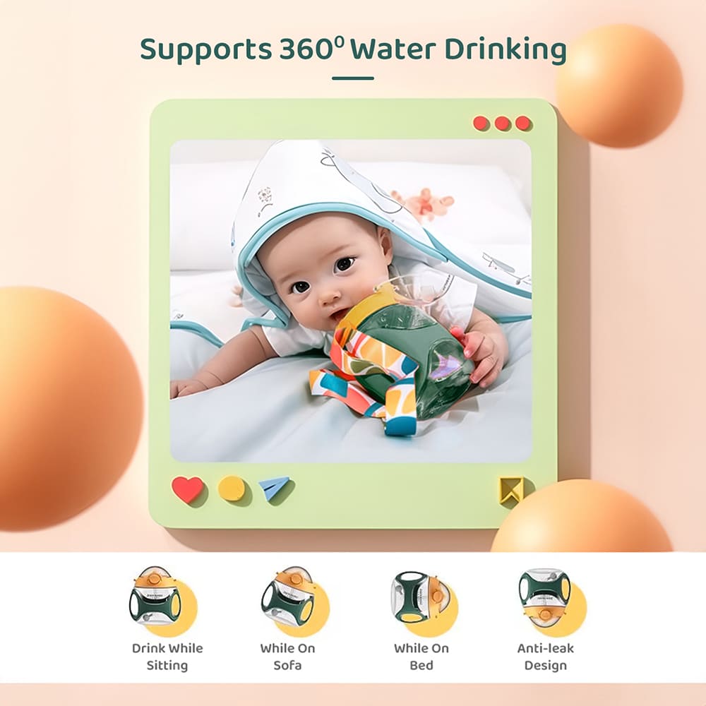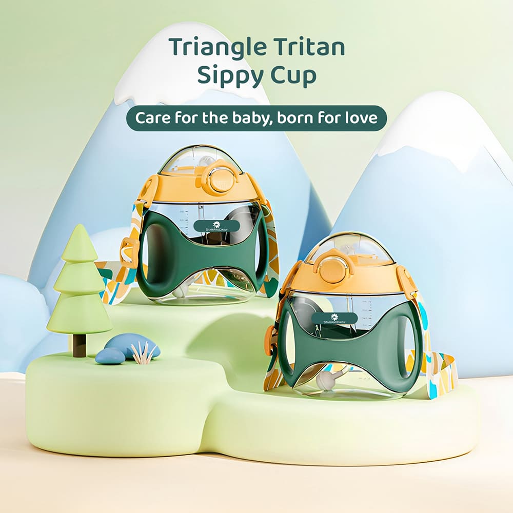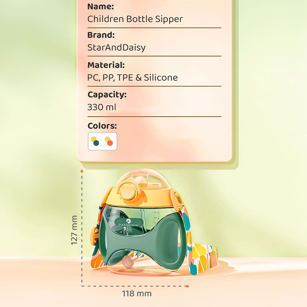 StarAndDaisy Baby Bite Resistant Soft Straw Sipper Cup with Handle, with Weighted Straw, Sippy Cup with Anti Spill Lock, BPA Free & 360° Water Drinking Sipper Cup – 330ML, Green