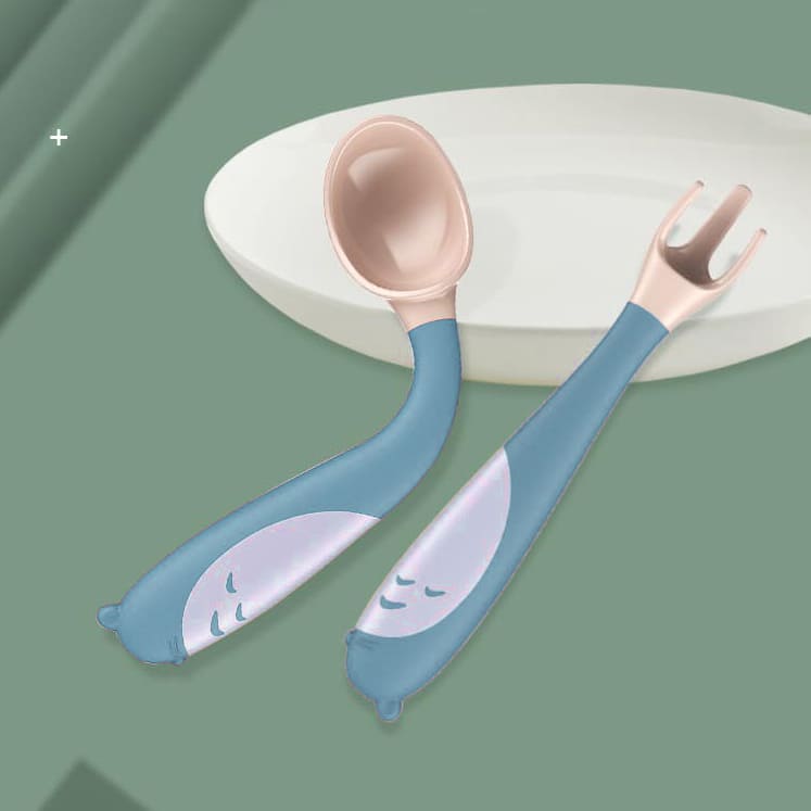 StarAndDaisy Baby Cultery Set Non SLip and Easy To Grip, Ergonomic Design BPA Free set of two (Blue)