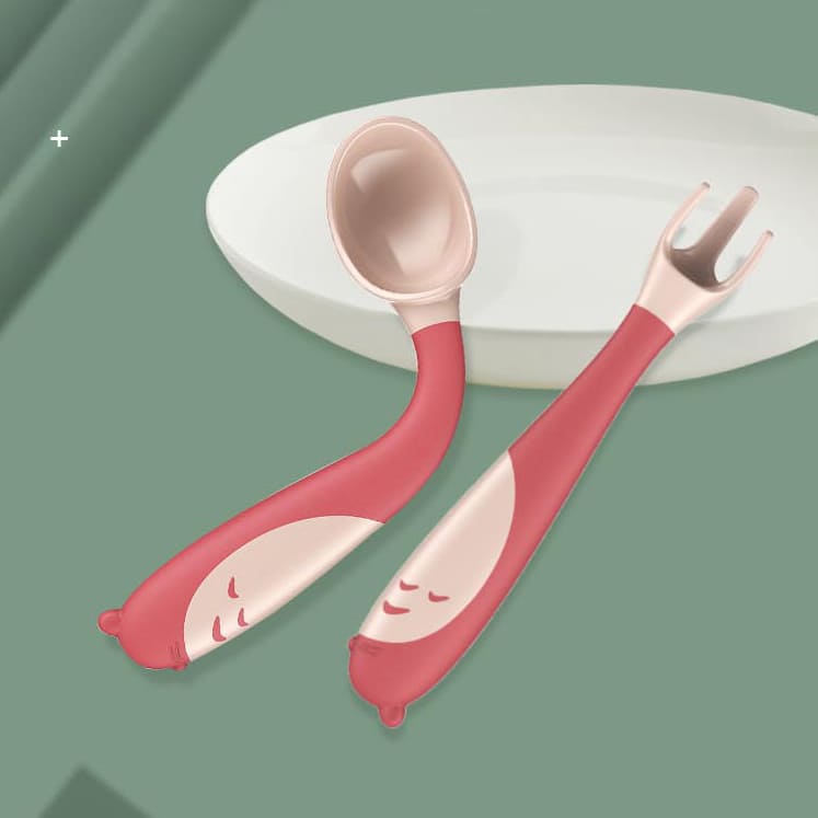 StarAndDaisy Baby Cultery Set Non SLip and Easy To Grip, Ergonomic Design BPA Free set of two (Red)