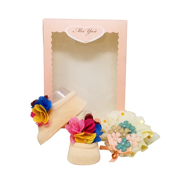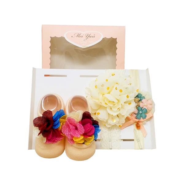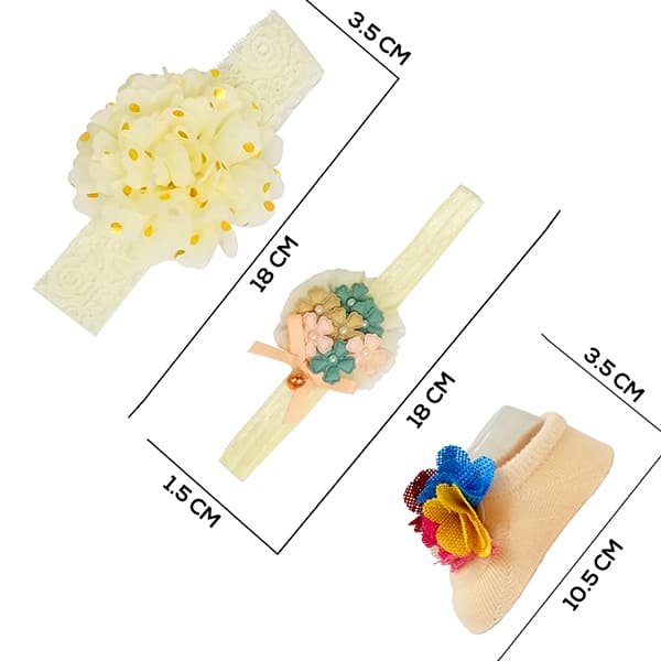 StarAndDaisy Baby Shoes and Hair Accessories for New Born Baby Girl 6 Months and 12 Months (Cream)