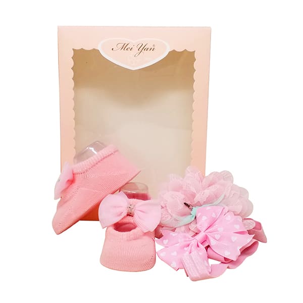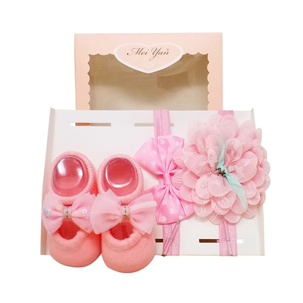 StarAndDaisy Baby Shoes and Hair Accessories for New Born Baby Girl 6 Months and 12 Months (Light Pink)