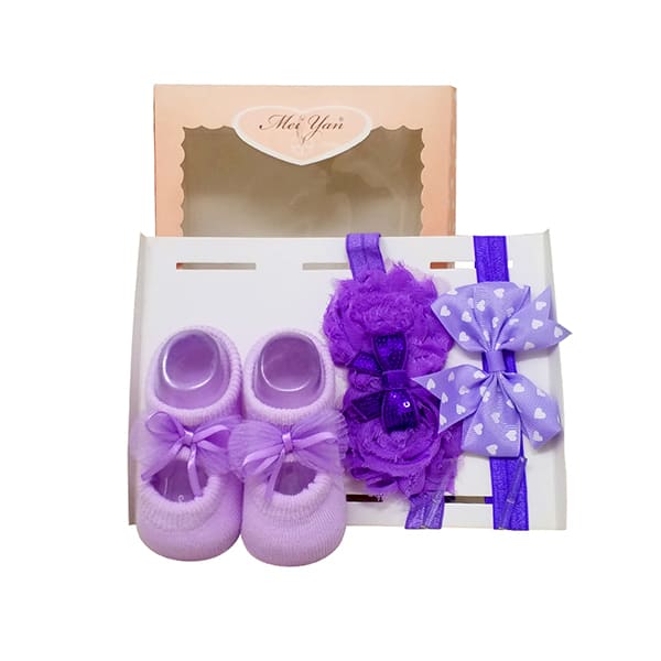 StarAndDaisy Baby Shoes and Hair Accessories for New Born Baby Girl 6 Months and 12 Months (Purple)
