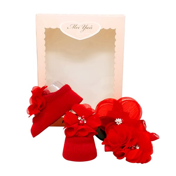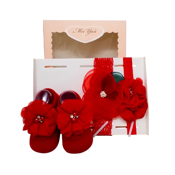 StarAndDaisy Baby Shoes and Hair Accessories for New Born Baby Girl 6 Months and 12 Months (Red)
