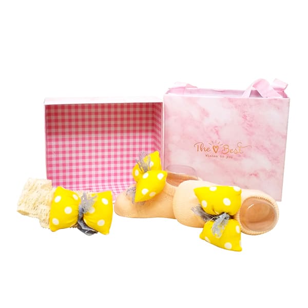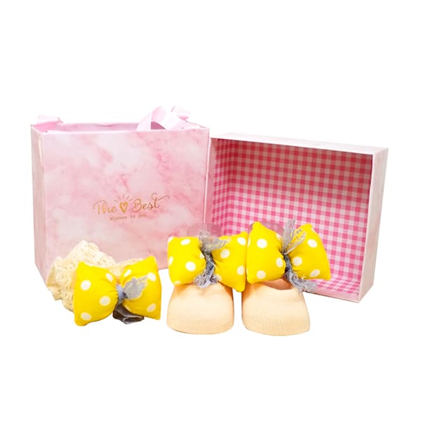 StarAndDaisy Baby Shoes and Hair Accessories for New Born Baby Girl 6 Months and 12 Months (Yellow)