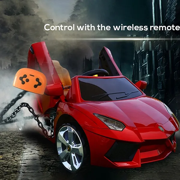 StarAndDaisy Battery Operated Car On Ride With Vertical Opening Doors Remote Control & Music – Red