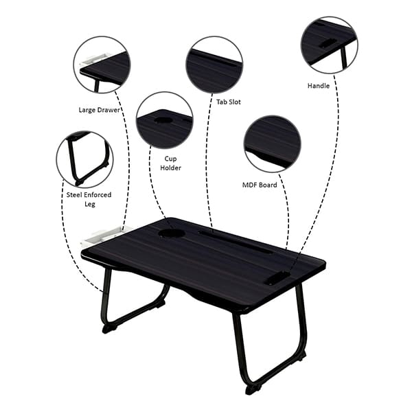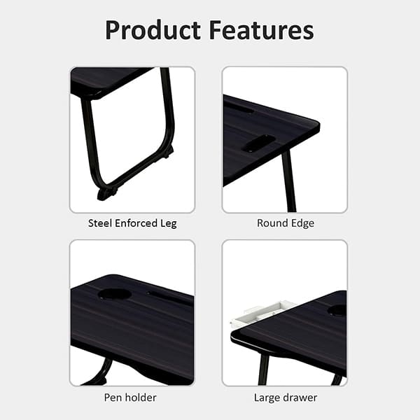 SND Homes ‘Bed Buddy’ Laptop Desk,Portable Foldable Laptop Bed Tray Table with Drawer,Bed Tray for Eating,Laptop Bed Tray Table for Bed and Sofa (All Black)