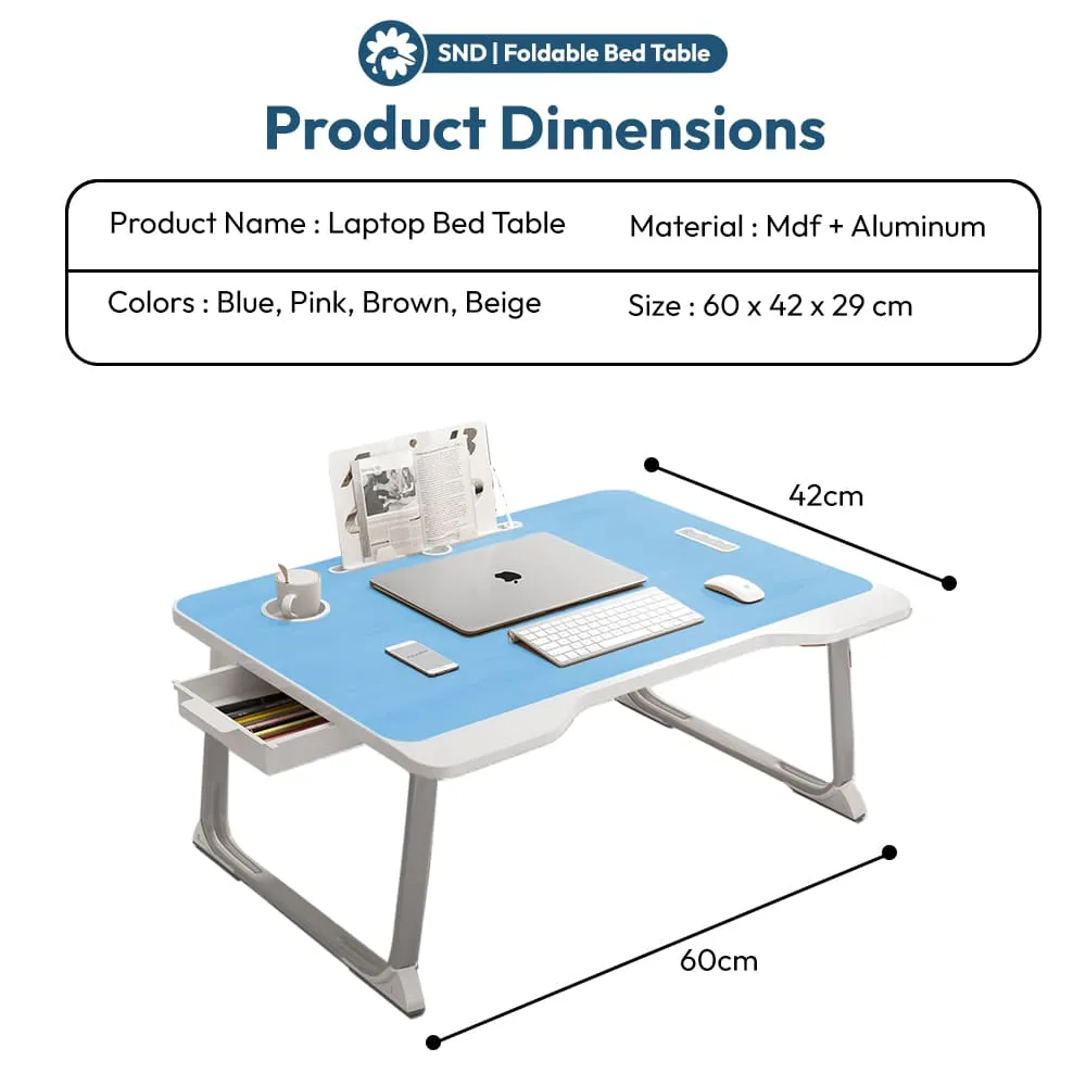 SND Homes ‘Bed Buddy’ Laptop Desk,Portable Foldable Laptop Bed Tray Table with Drawer,Bed Tray for Eating,Laptop Bed Tray Table for Bed and Sofa (All Blue)