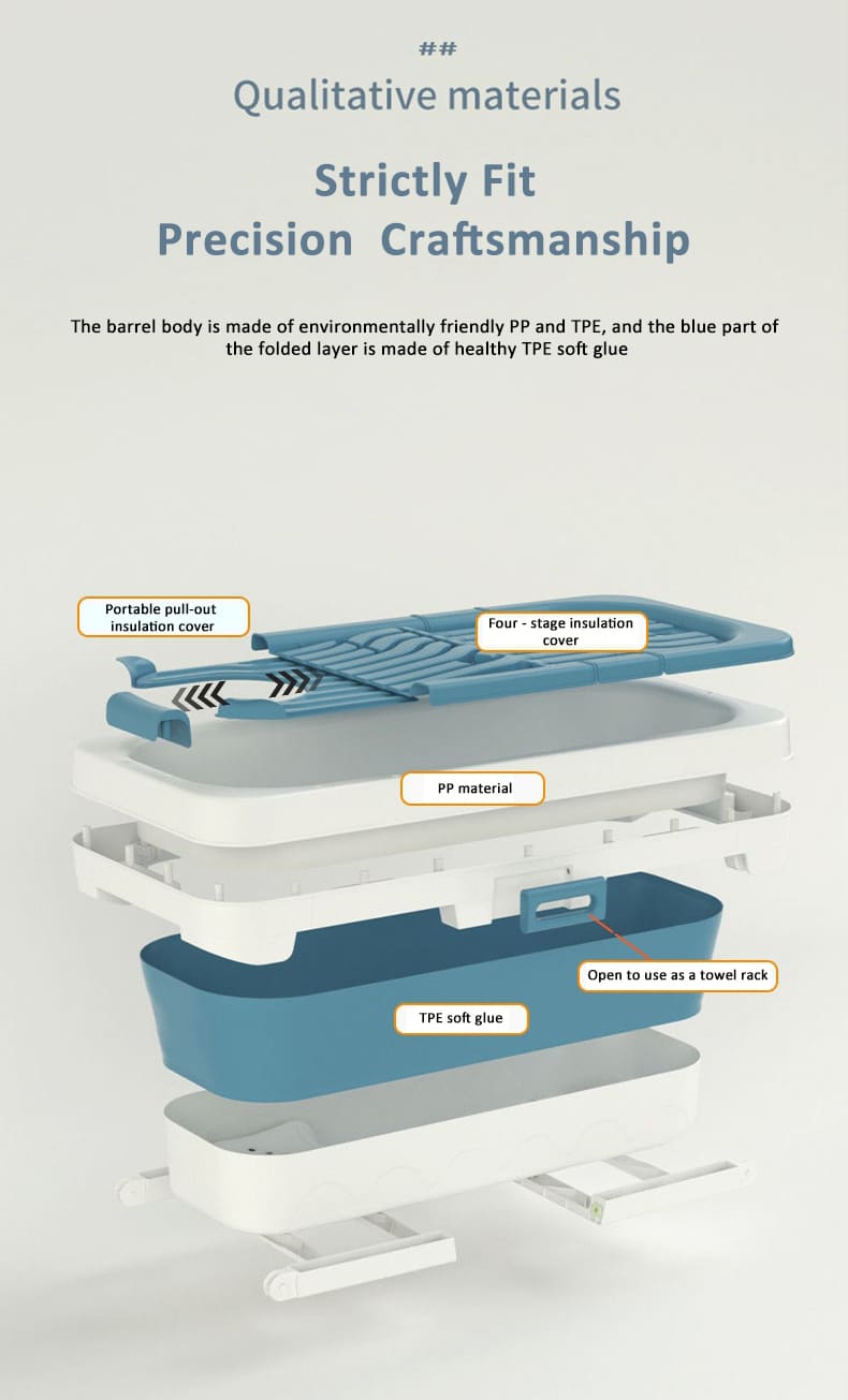 - Friendly Bathtub: The bathtub is seamlessly easy to fold and store. Feel free to take it anywhere with you since it is folded down to 19.6cm.