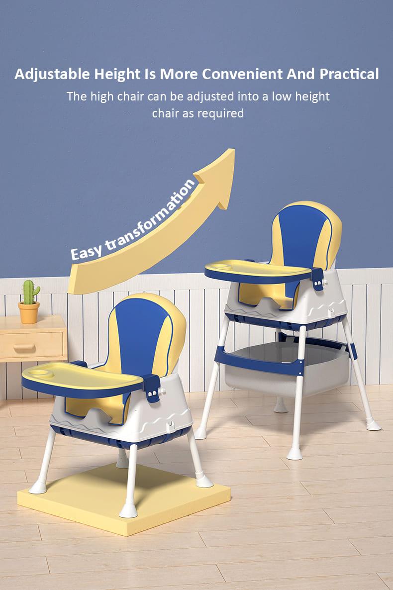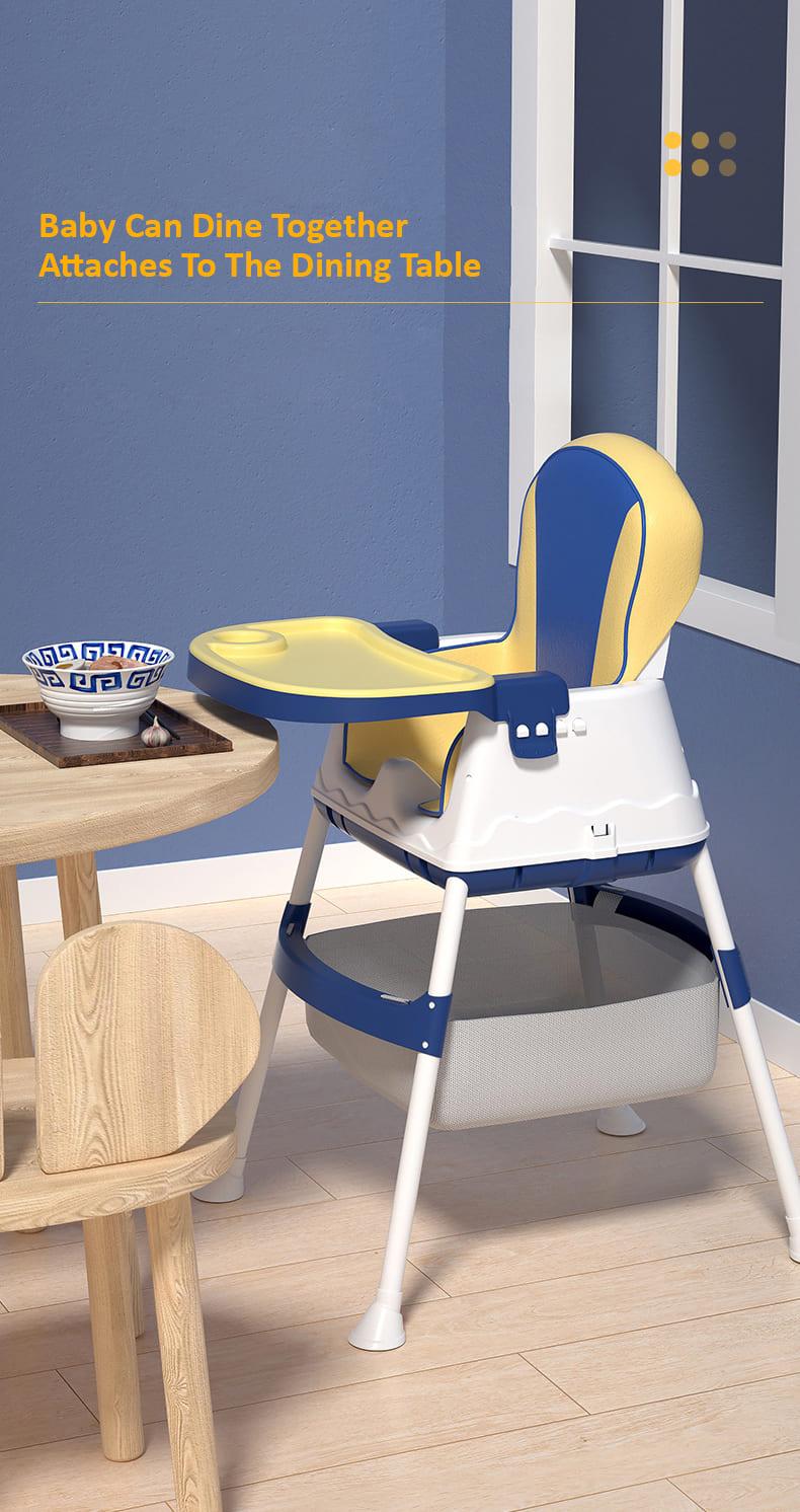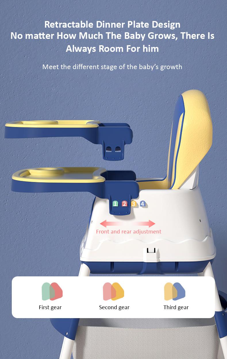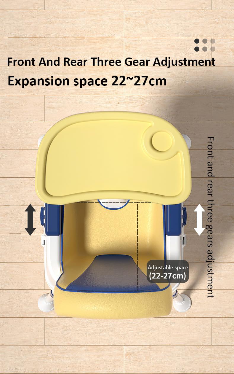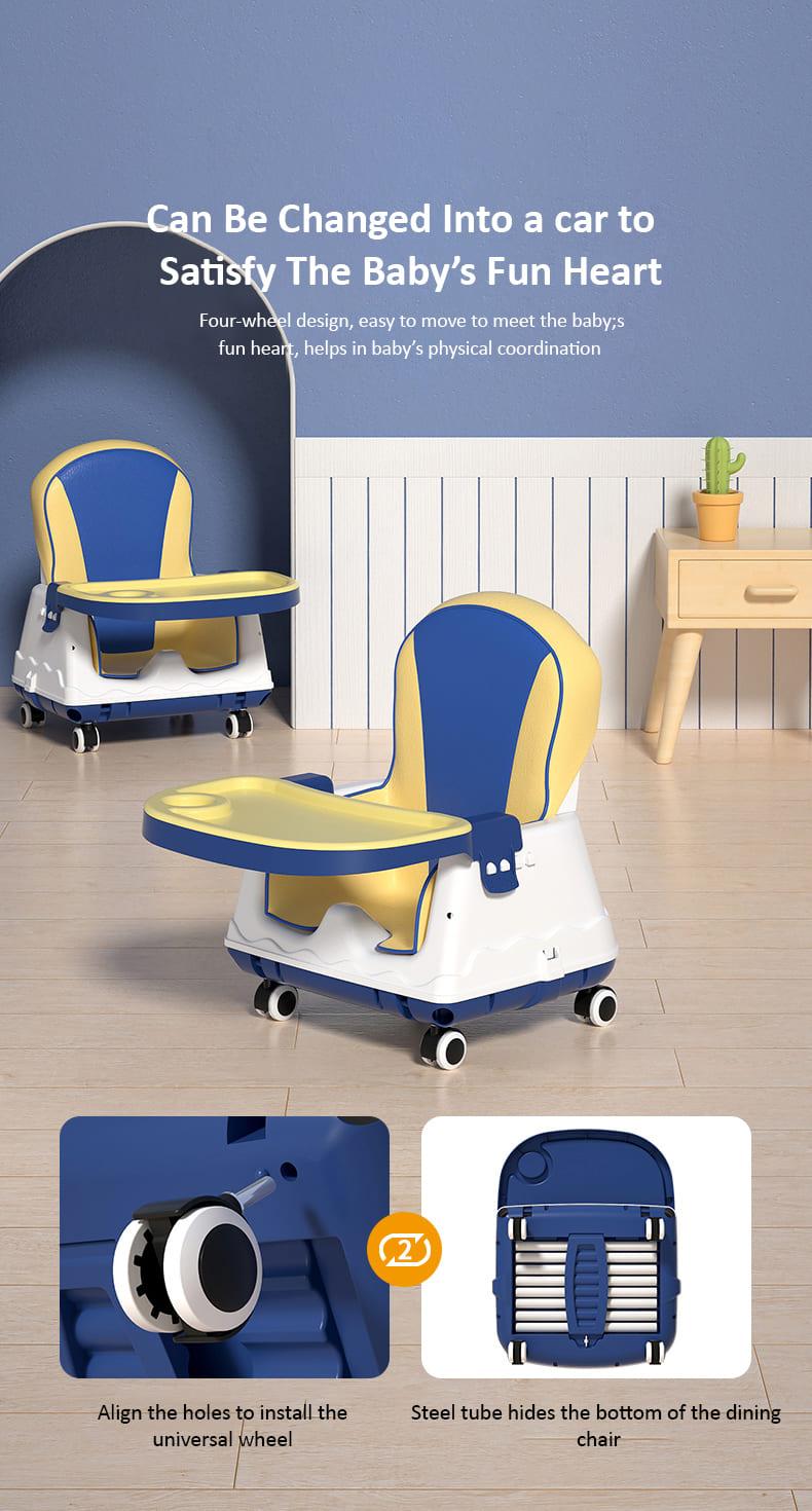 ADJUSTABLE & SPACE-SAVING – Removable tray with 3 adjustable positions that suitable for different stage of baby?s growth. SAFE & REASSURING – This baby chair made of PP Plastic Table, Metal Frame. This chair has Cushion and Wheel option.