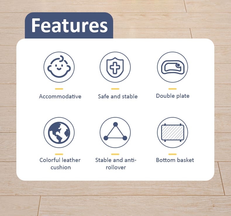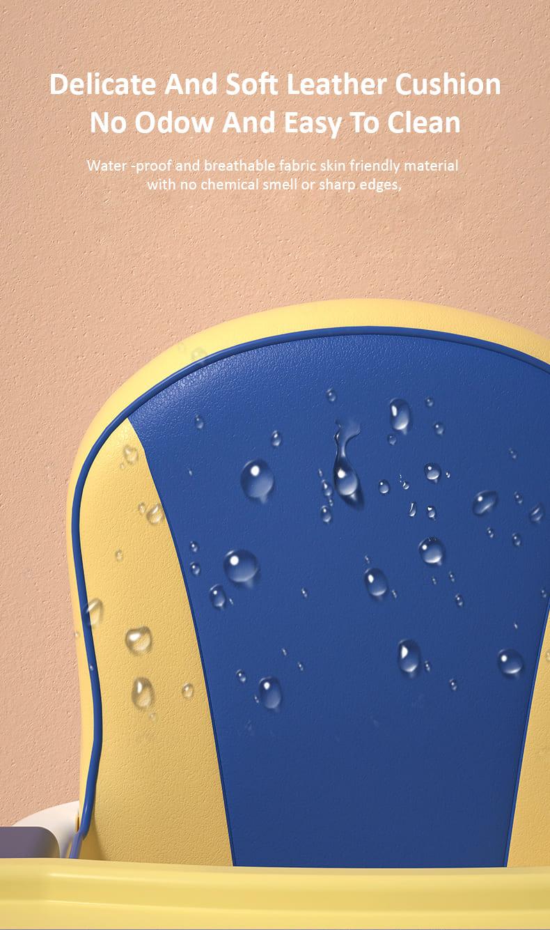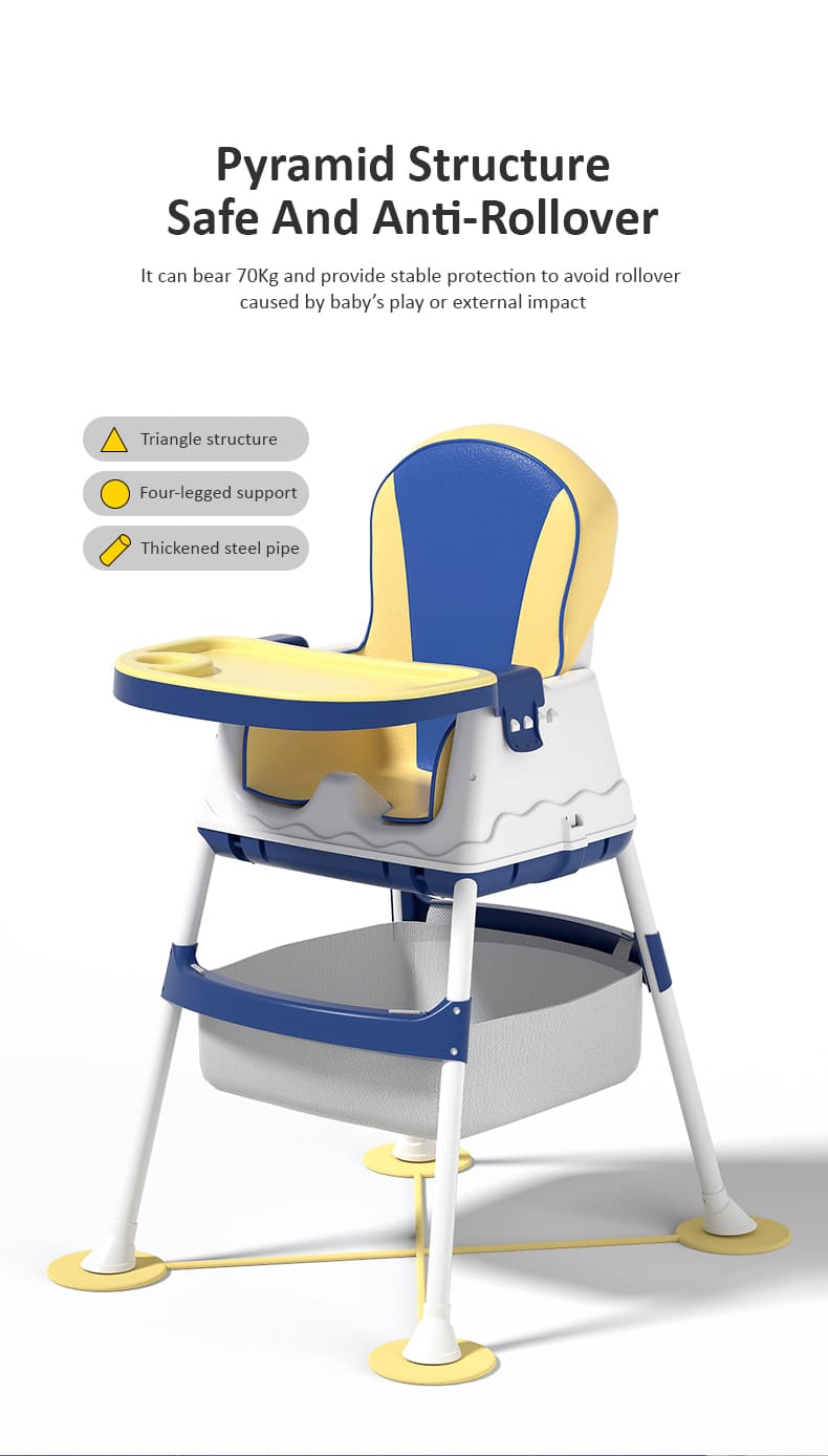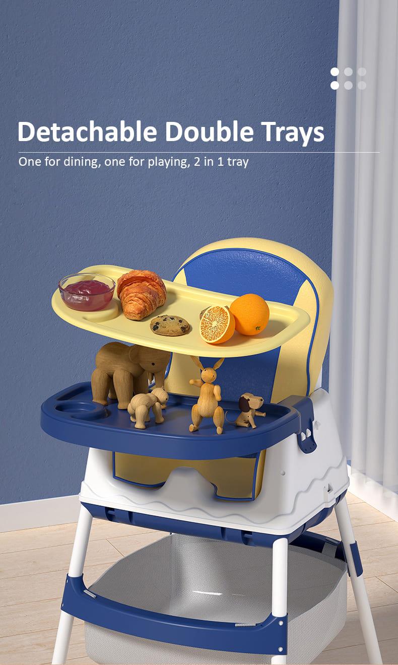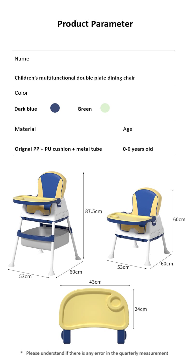 ADJUSTABLE & SPACE-SAVING – Removable tray with 3 adjustable positions that suitable for different stage of baby?s growth. SAFE & REASSURING – This baby chair made of PP Plastic Table, Metal Frame. This chair has Cushion and Wheel option.