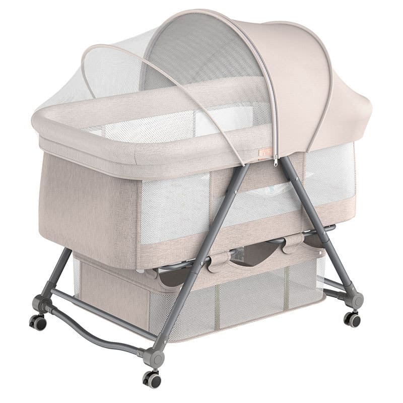 StarAndDaisy D01 Manual Baby Cot Crib Newborn Baby Bassinet with Cradle, Wheel, Mosquito net and Bedding Set (Brown)