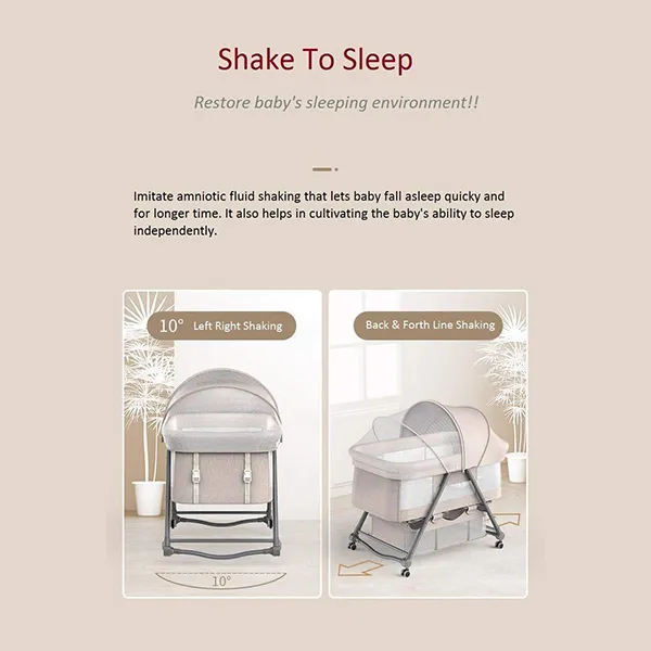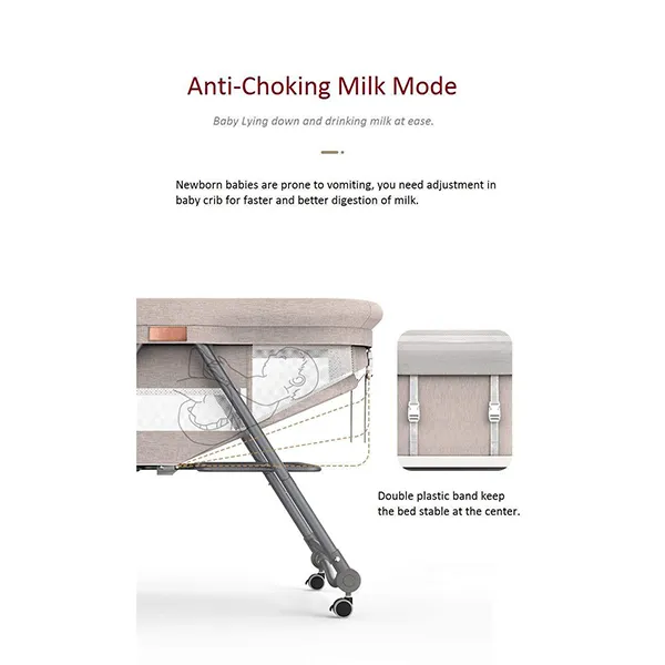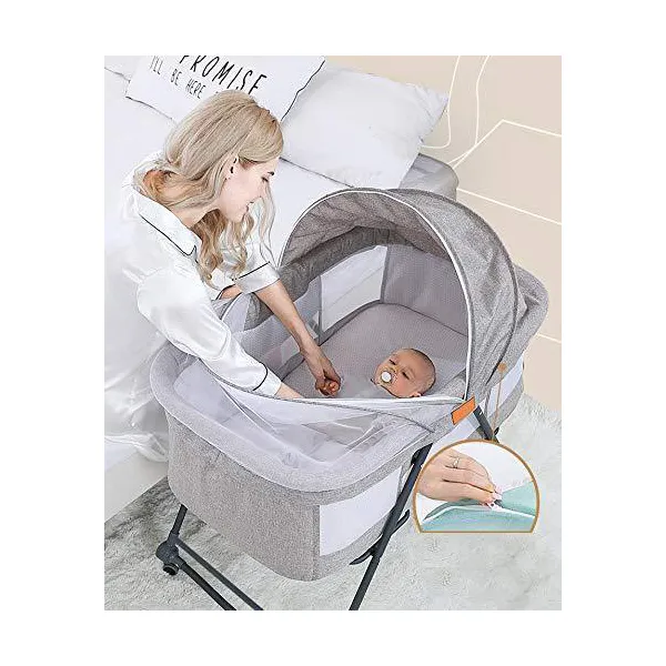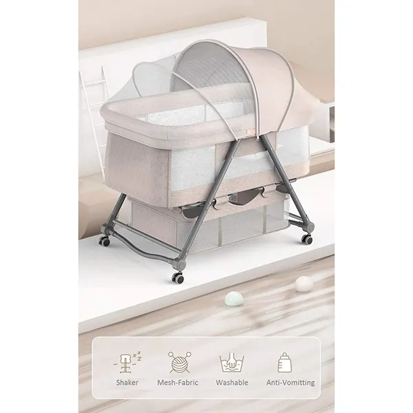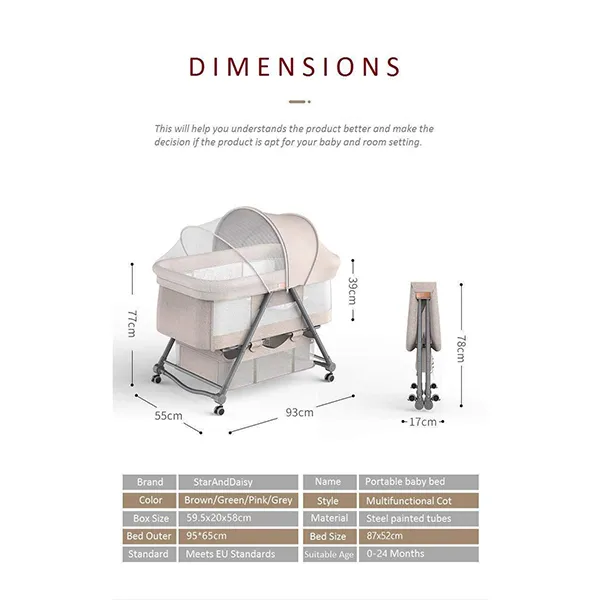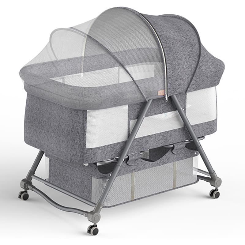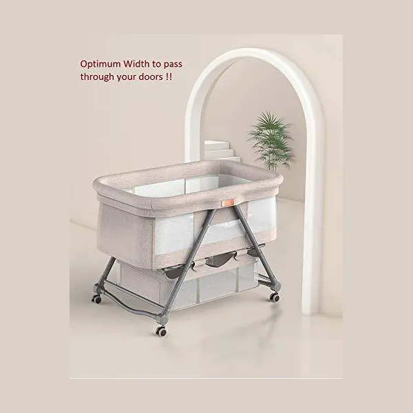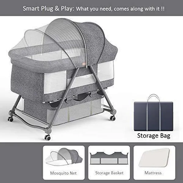 StarAndDaisy Manual D01 Baby cot Crib Newborn Baby Bassinet with Cradle, Wheel, Mosquito net and Bedding Set (Grey)