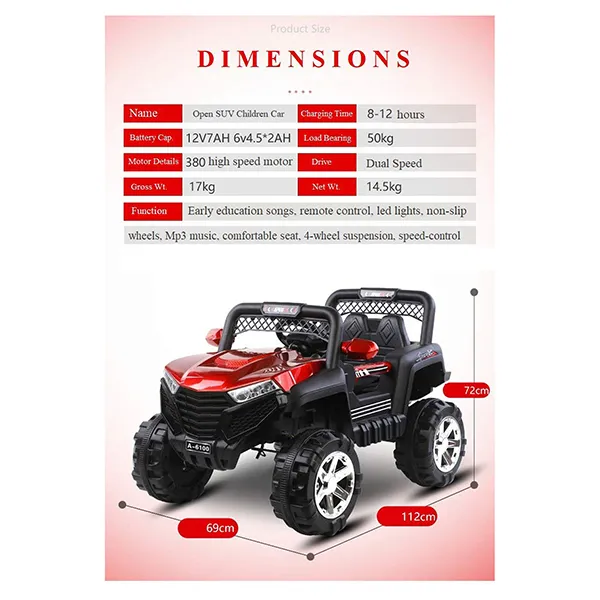 StarAndDaisy Electric Kids Ride On Cars 12V Battery Power Vehicles W/Wheels Suspension Seater Remote Control Motorized Simulation Model SUV Music& Story Playing Colorful Lights, Four drive (red)