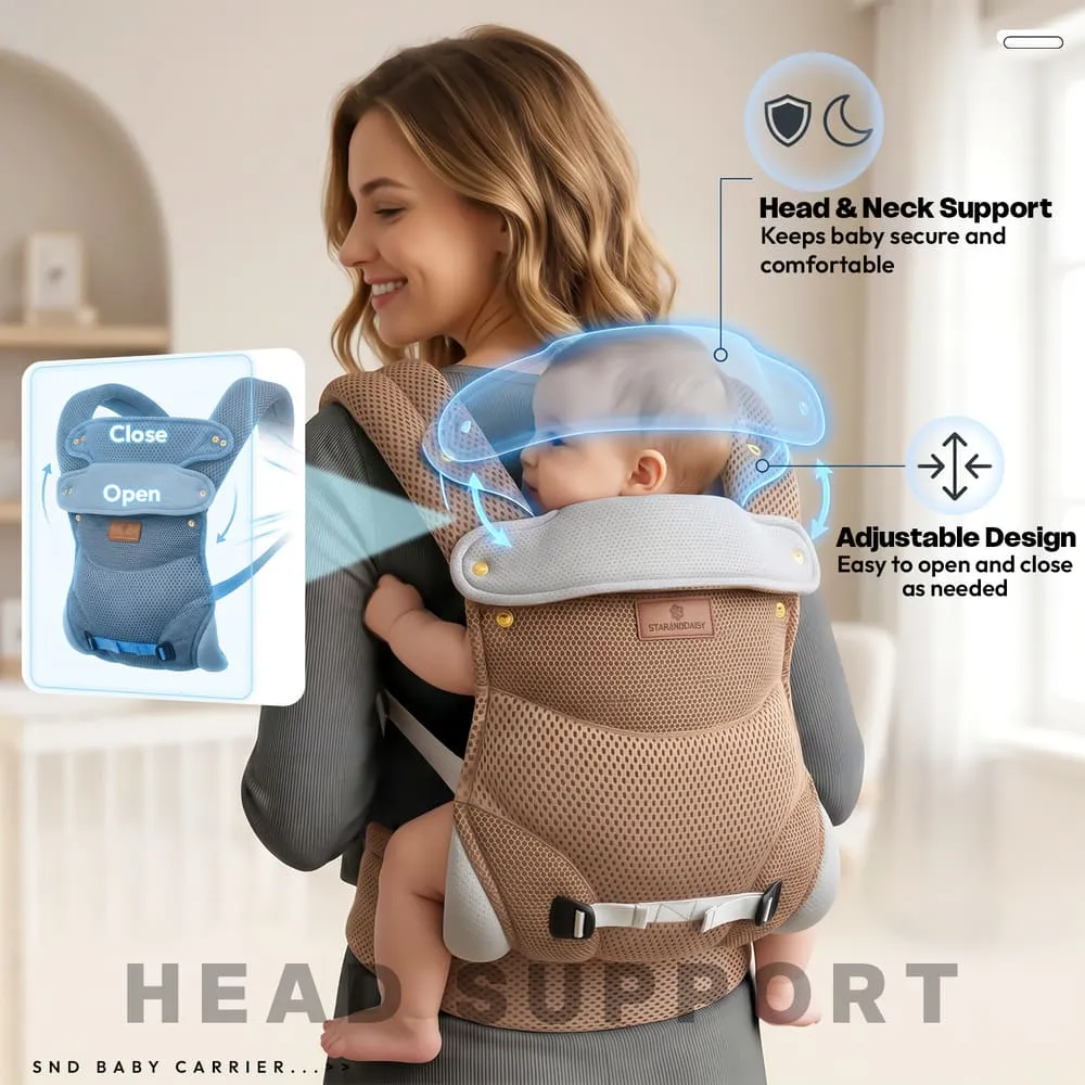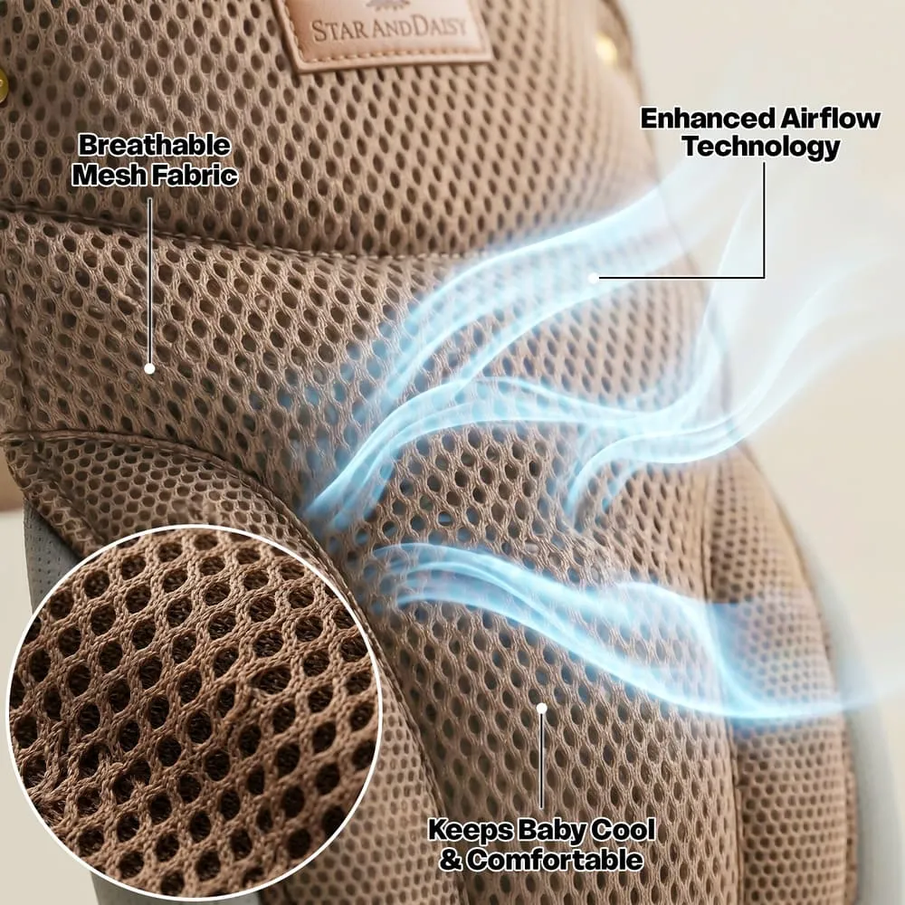 With extended head and neck support, this ergonomic baby carrier offers extra protection for newborns and infants, ensuring stability during movement. The wide seat design supports natural posture, preventing hip strain and ensuring long-term comfort. Whether you’re searching for a comfortable baby carrier for newborns, a breathable Infant carrier, or a durable baby carrier for everyday use, StarAndDaisy delivers a reliable and stylish solution.