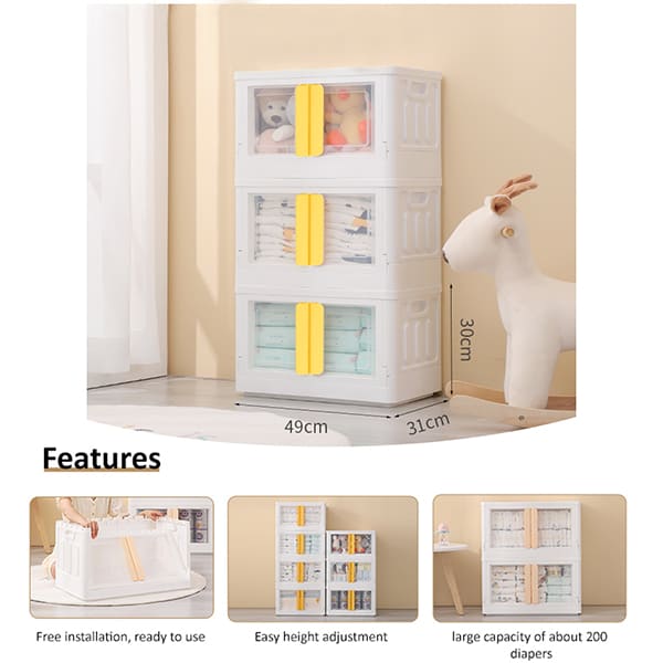 StarAndDaisy Foldable Toys Storage Box *No Assembly Needed* Clear Plastic Stackable Kids wardrobe organizer cupboard cabinet, Double door front opening (1 stackable cuboids | 32 Lt)
