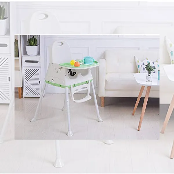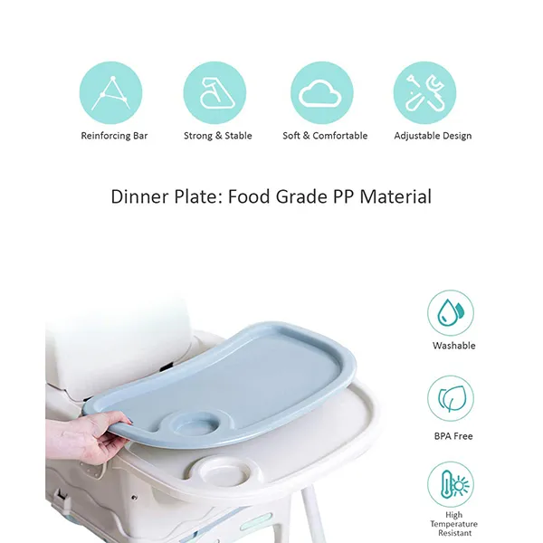StarAndDaisy Folding Baby High Chair Recline Highchair Height Adjustable Feeding Seat Wheels *Upgraded Version with Wheel and PU Cushion pad* (Green Blue)