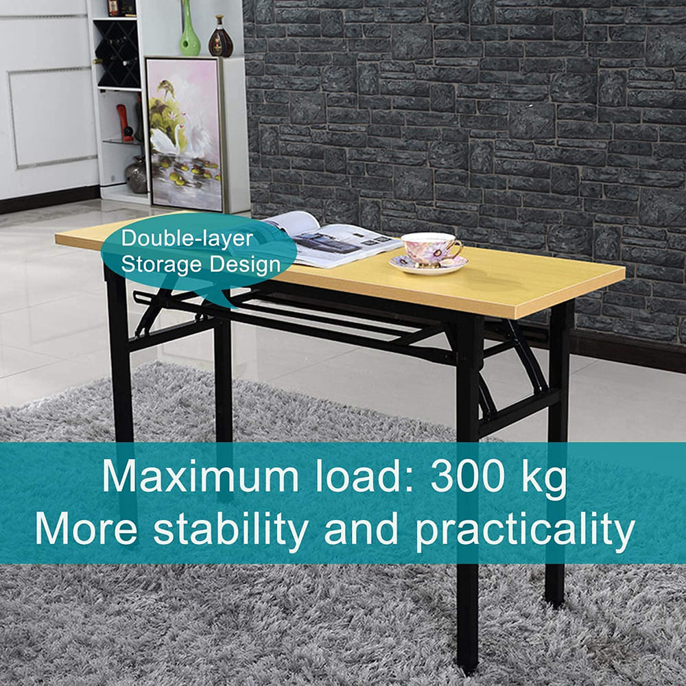 Folding study table is made of high-density board and steel. The desk surface is treated by rust removal, electrostatic spraying, high temperature curing, etc. Smooth and easy to clean. The bracket is made of high quality square steel tube and has strong bearing capacity.