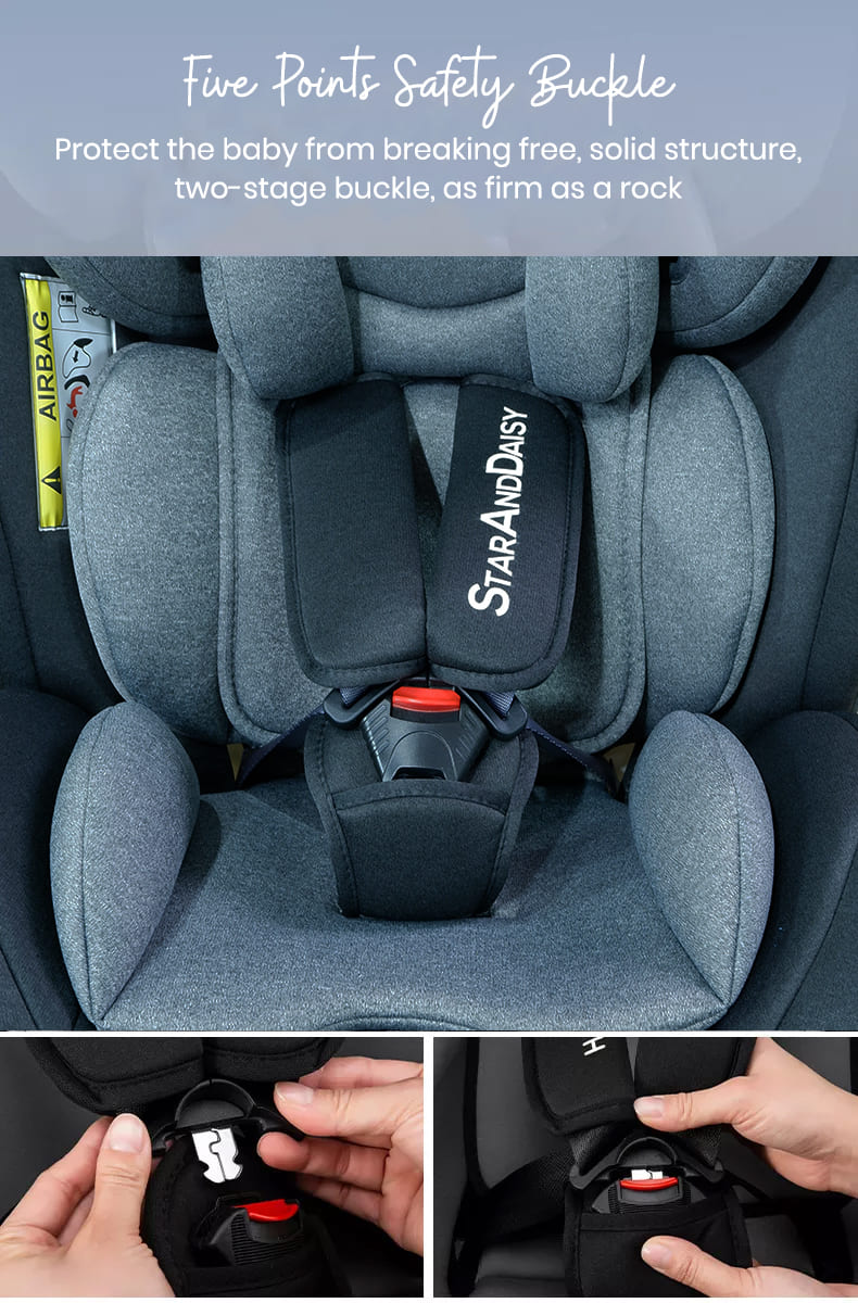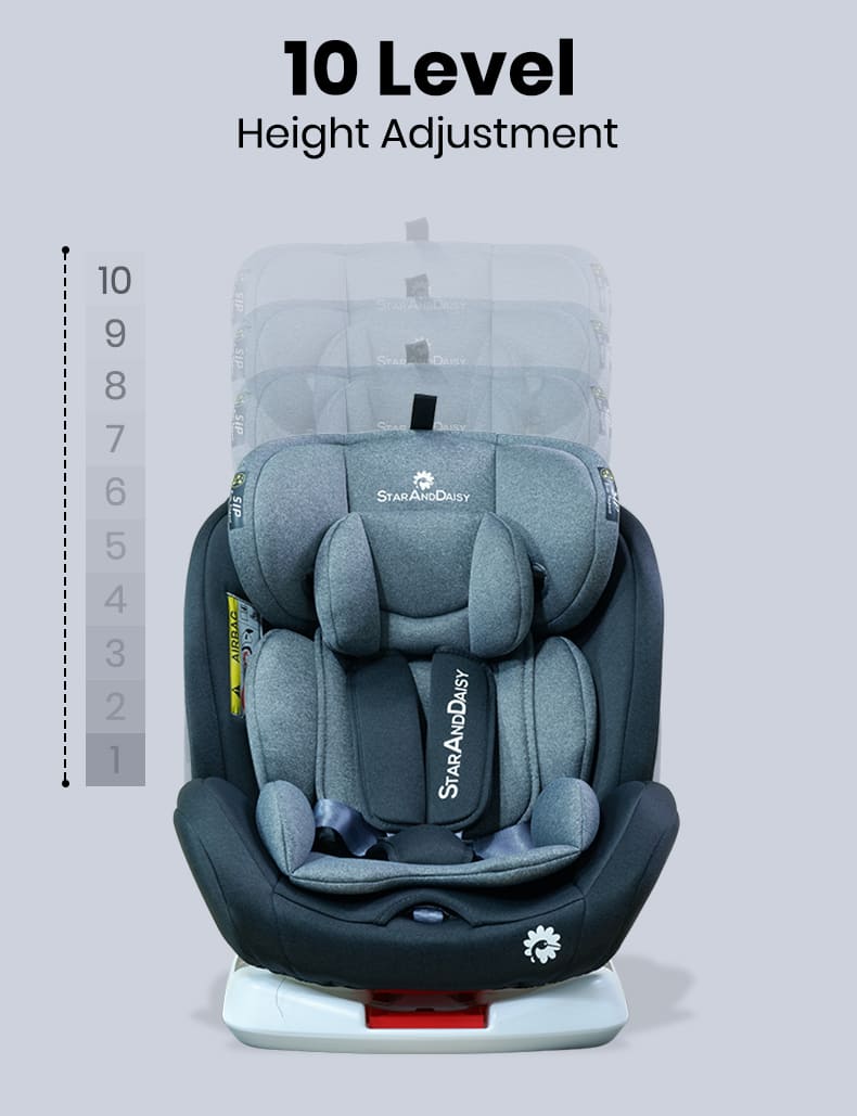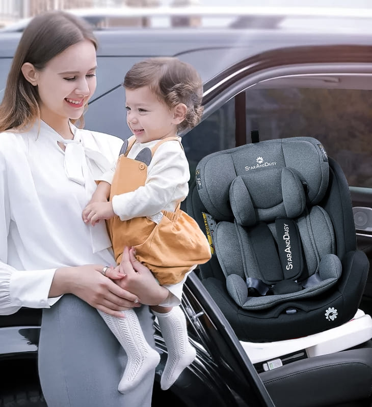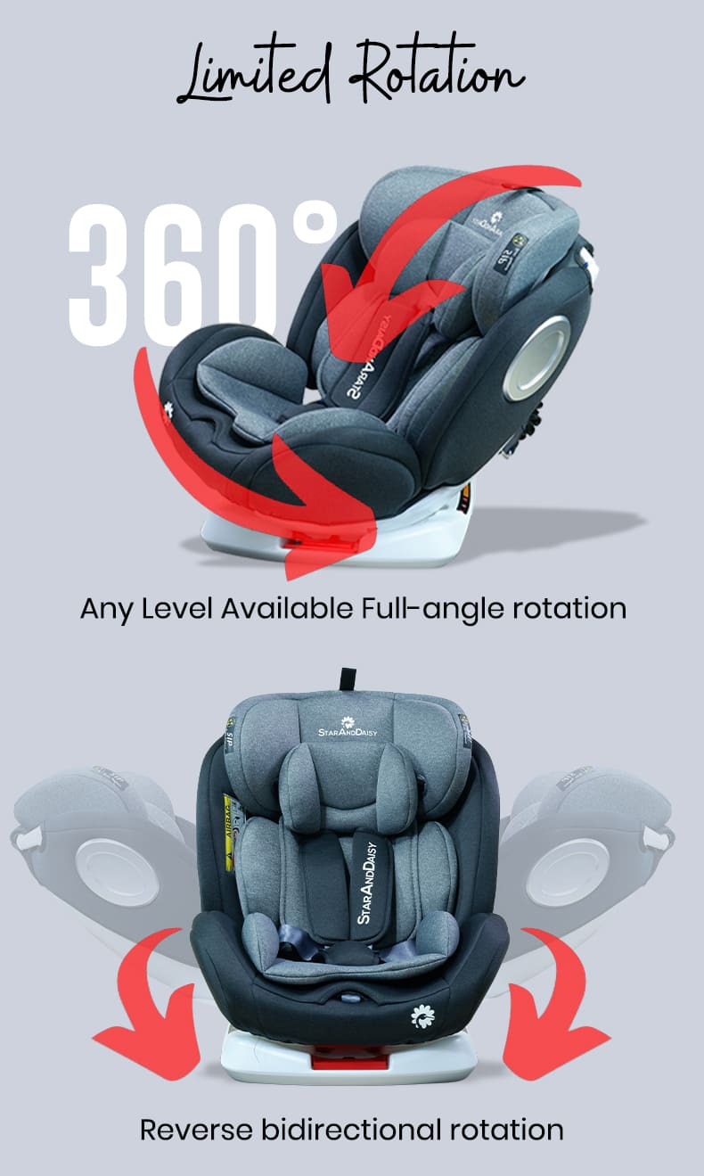 StarAndDaisy Grand ISOFIX Car Seat 360° rotation, Recline, SIP (Side Impact Protection)- Forward and Rear Facing with Side Protection, Convertible with Height adjustment (0-12 Year/0-36 kg | Black)