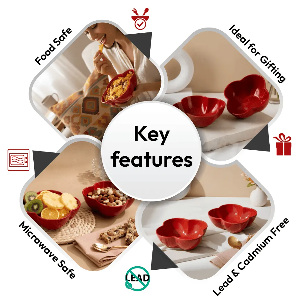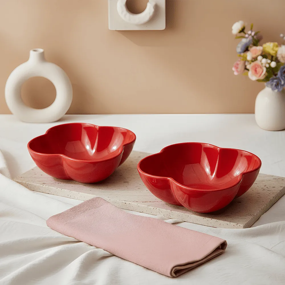 StarAndDaisy Hexa Design Snack Bowl Set of 2, Microwave Safe Food Grade Serving Bowls for Fruits & Dry Fruits – 600ml Red