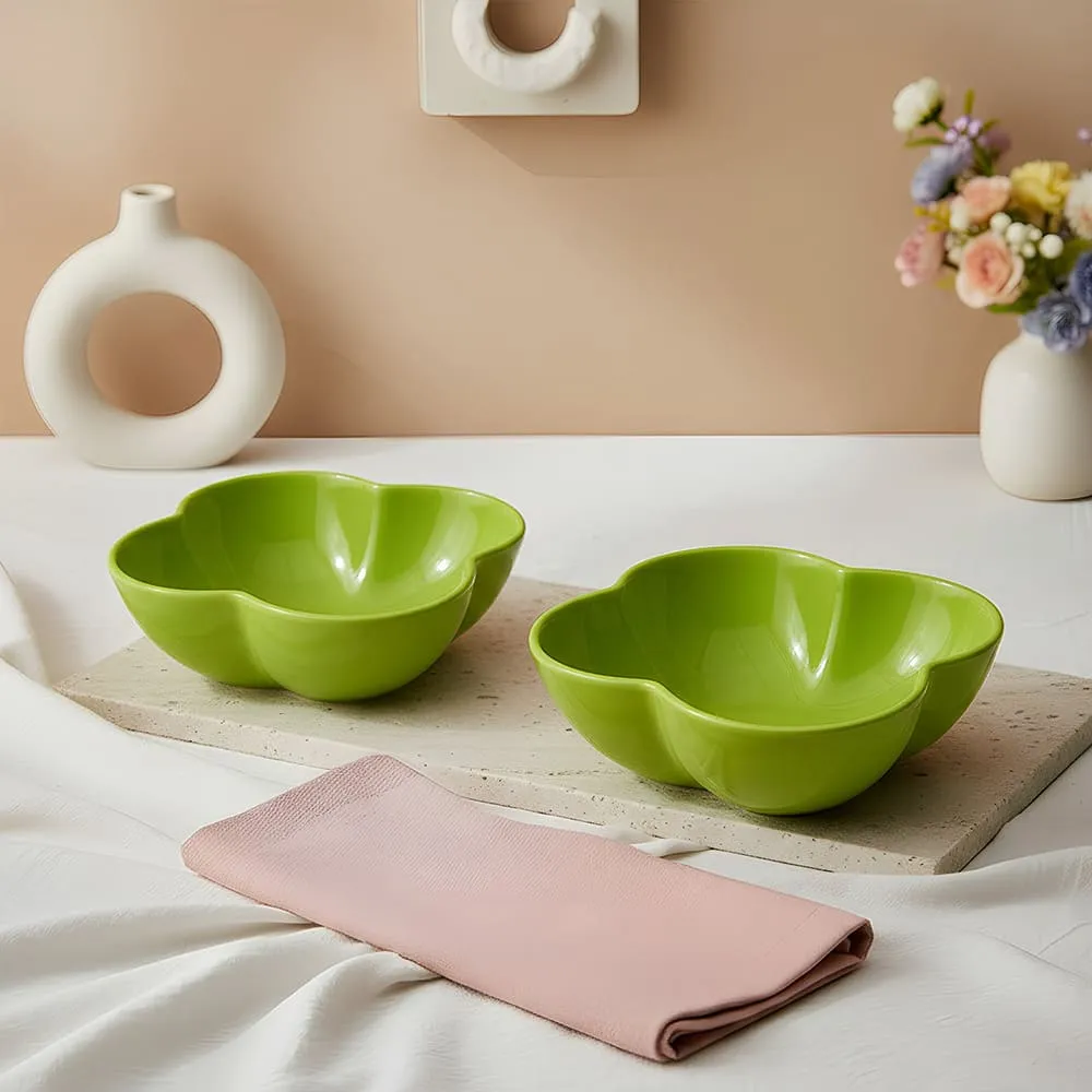 StarAndDaisy Hexa Serving Bowl Set of 2, 100% Melamine Microwave Safe Snack, Fruit & Dry Fruit Bowls – 600ml Green