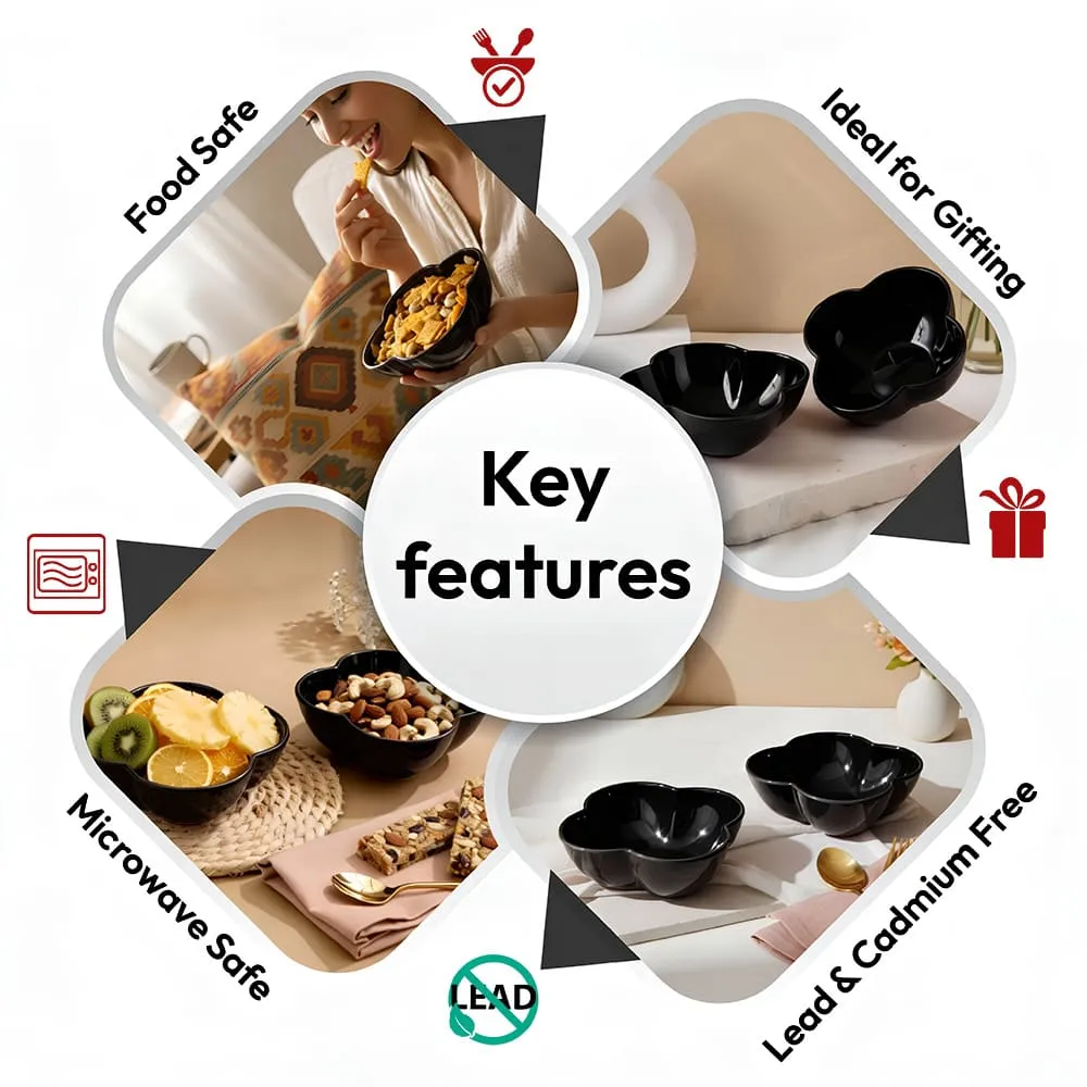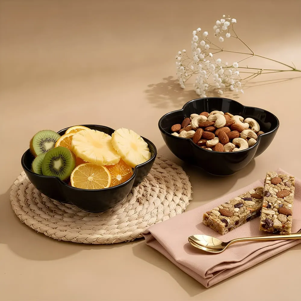 StarAndDaisy Hexa Shape Snack Bowl Set of 2 | Microwave Safe, Food Grade Multipurpose Serving Bowls – 600ml Black