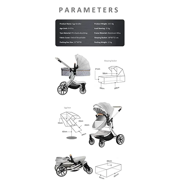 This High-End Buggy Kids Stroller takes your strolls to a whole new level. With an extra-large undercarriage storage basket and an extremely long canopy that gives your little one maximum coverage in all-weather, you are ready to