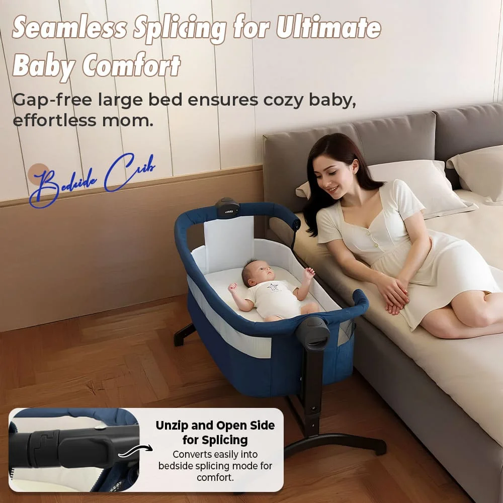 StarAndDaisy International Series 2 in 1 Bedside Crib And Cradle With Premium Aluminum Built for Infant Baby For Upto 2 Years (Navy Blue KK)