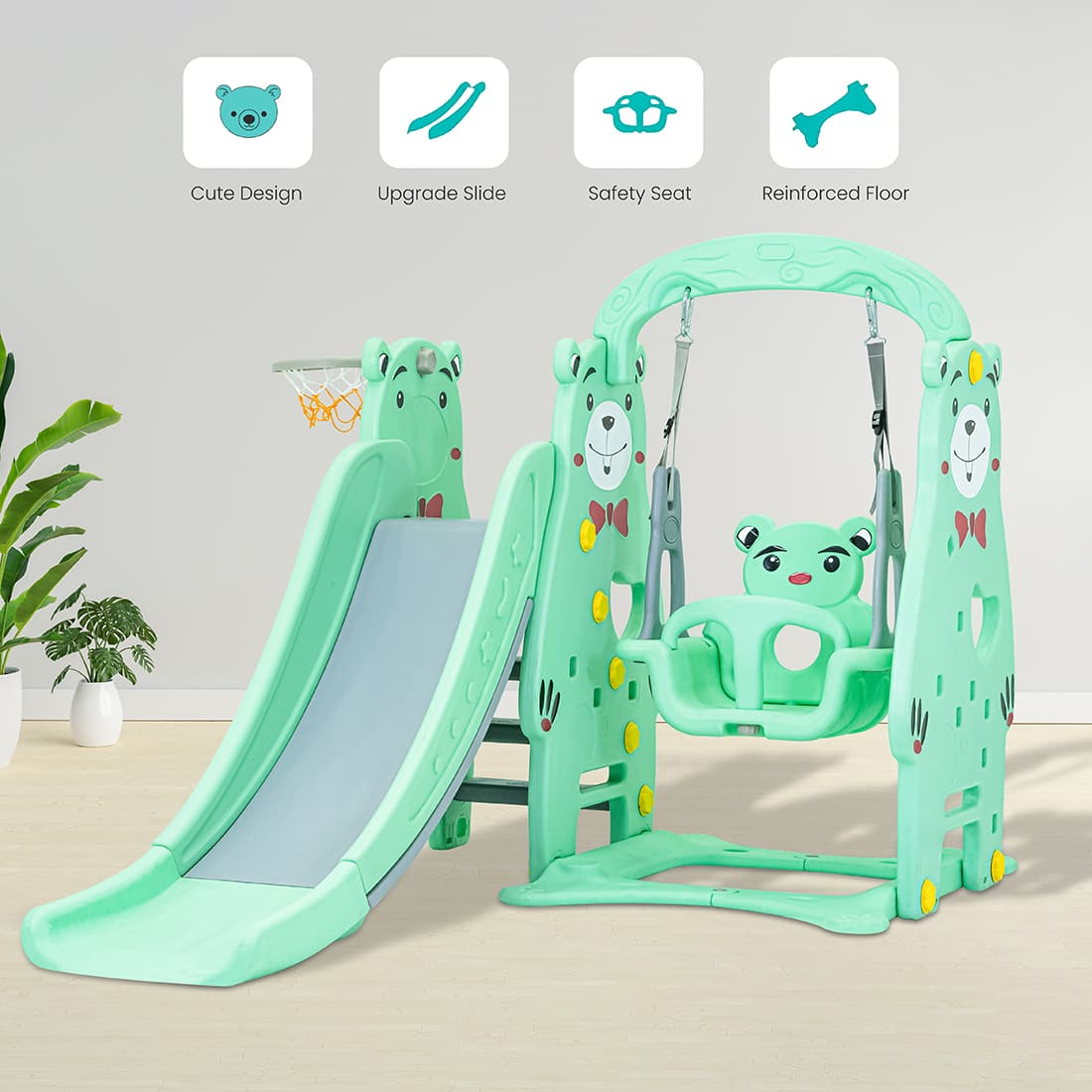 StarAndDaisy 3 in 1 Swing & Slider Combo for Kids, Includes Smooth Slide, Sturdy Swing, Basketball Hoop