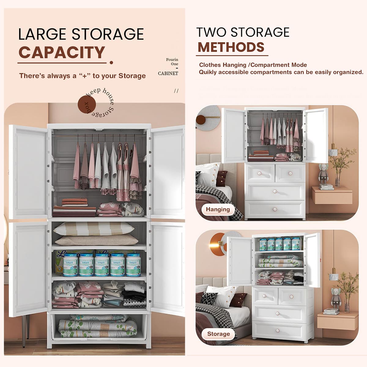 StarAndDaisy Kids Wardrobe Storage Convertible/Collapsible Almirah – Grey (H-135cm x W-65cm x D-38cm)