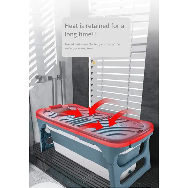 Multi-purpose storage space: The foldable bathtub is equipped with a storage tank and a storage basket