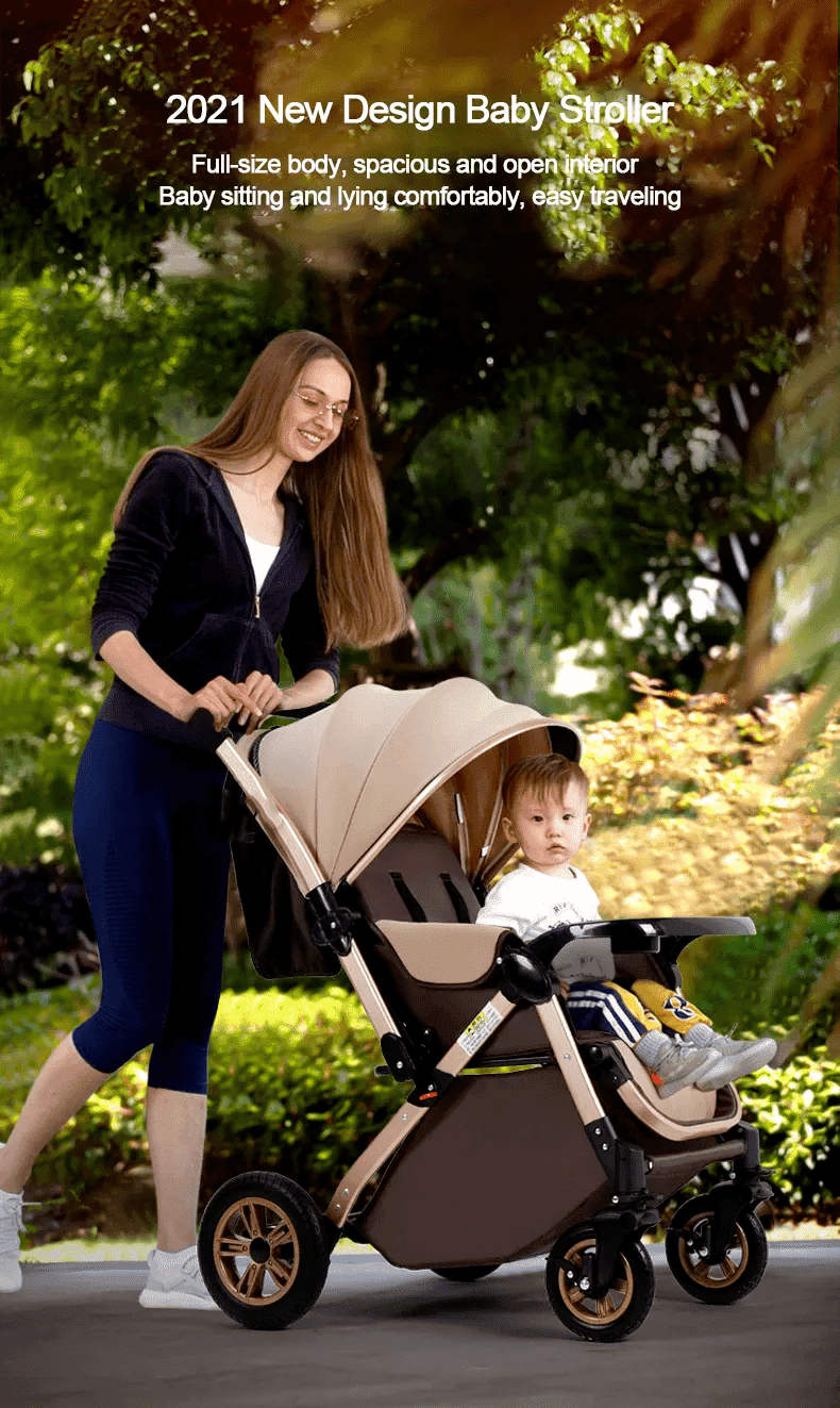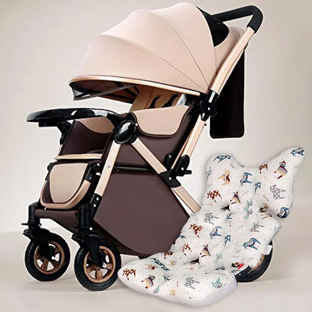 StarAndDaisy Multi-Adjustment Ultra Baby Stroller Pram & Buggy, Pushchair Reversible Handle with Anti-Shock Rubber Wheels (Brown | With Cushion)