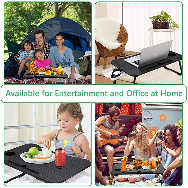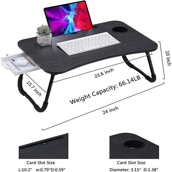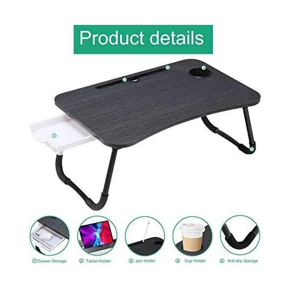SND Homes Multi-Purpose Foldable Laptop Bed Table With Storage Drawer/Cup Holder Slot And Notebook Holder (Black)