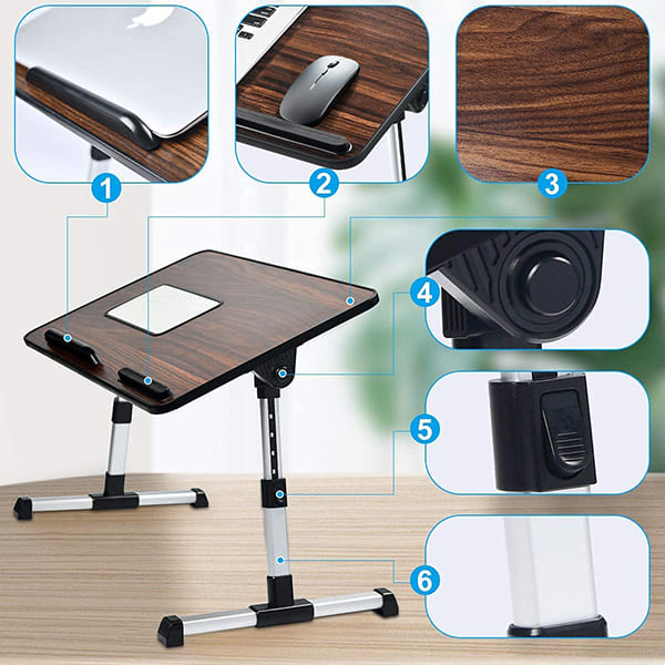 SND Homes Multipurpose Bed Table/ lapdesk Workstation for Lazy People with Height and Angle Adjustment (BurgundyWood (60 x 33 cm))
