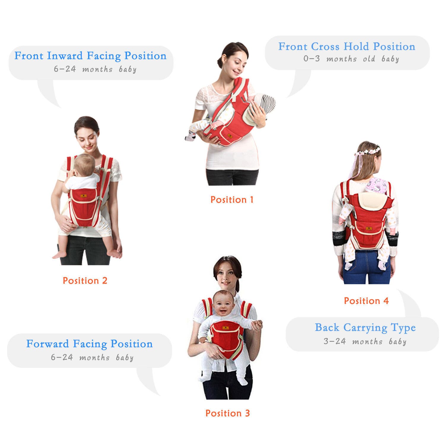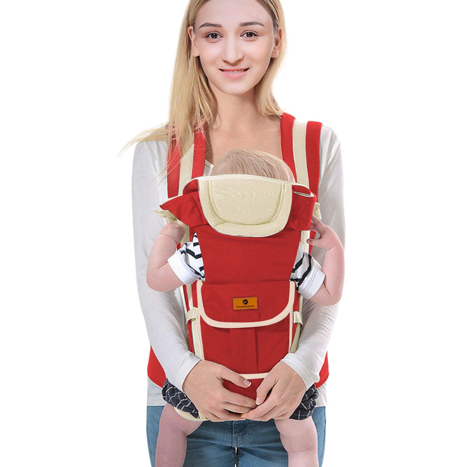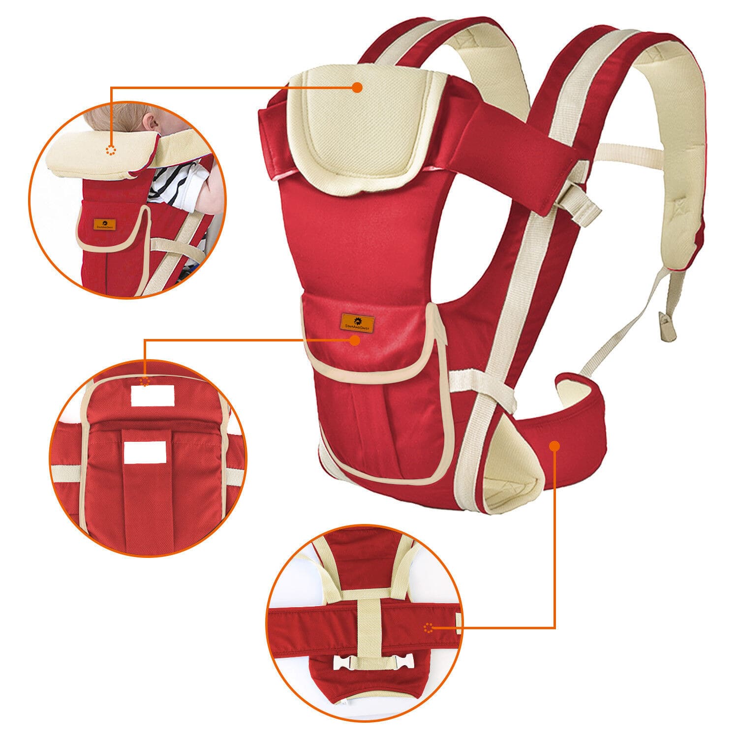 StarAndDaisy Multipurpose Strong Baby Carrier with Upgraded Breathable Air Fabric & Ergonomic Design Cushion Padding for Baby Comfort – Red