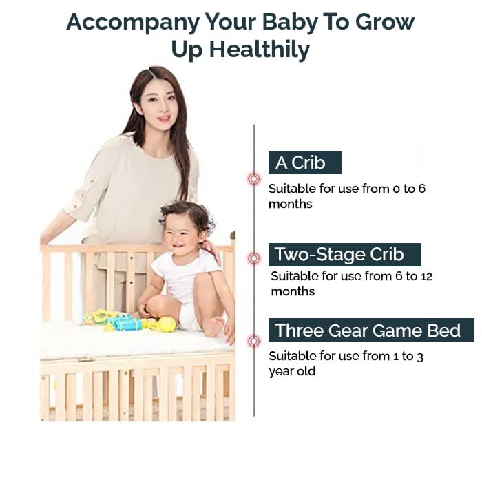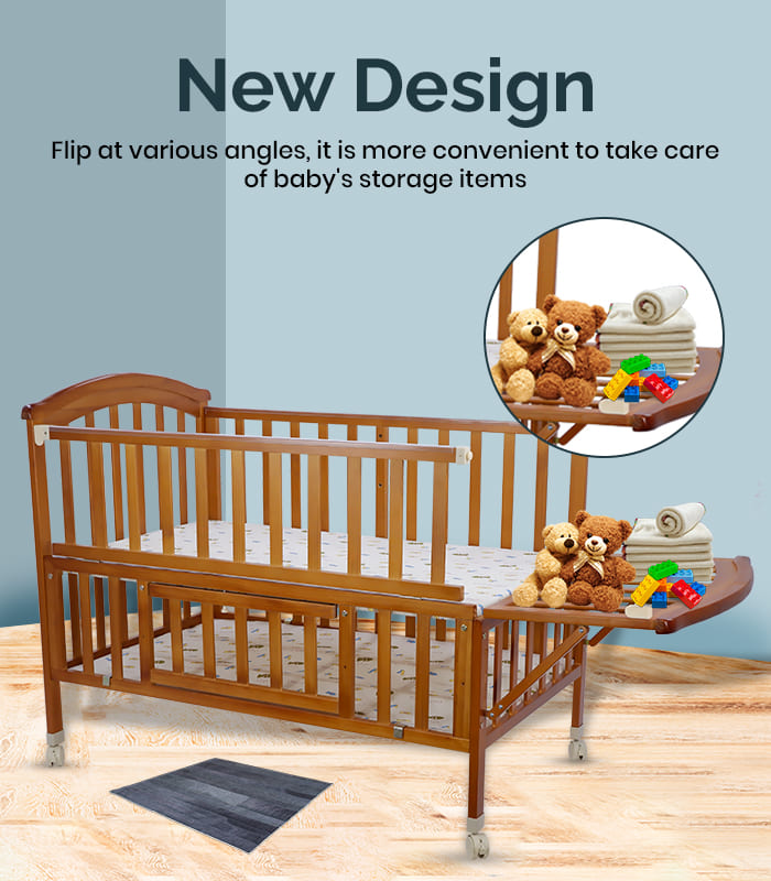 Sleep and grow is what babies love to do : The sleeping bed for 0-5 yr babies can be effortlessly transformed into a playpen, a drawing board and a desk. Also the space of the crib can be used to store favorite toys, diapers etc.