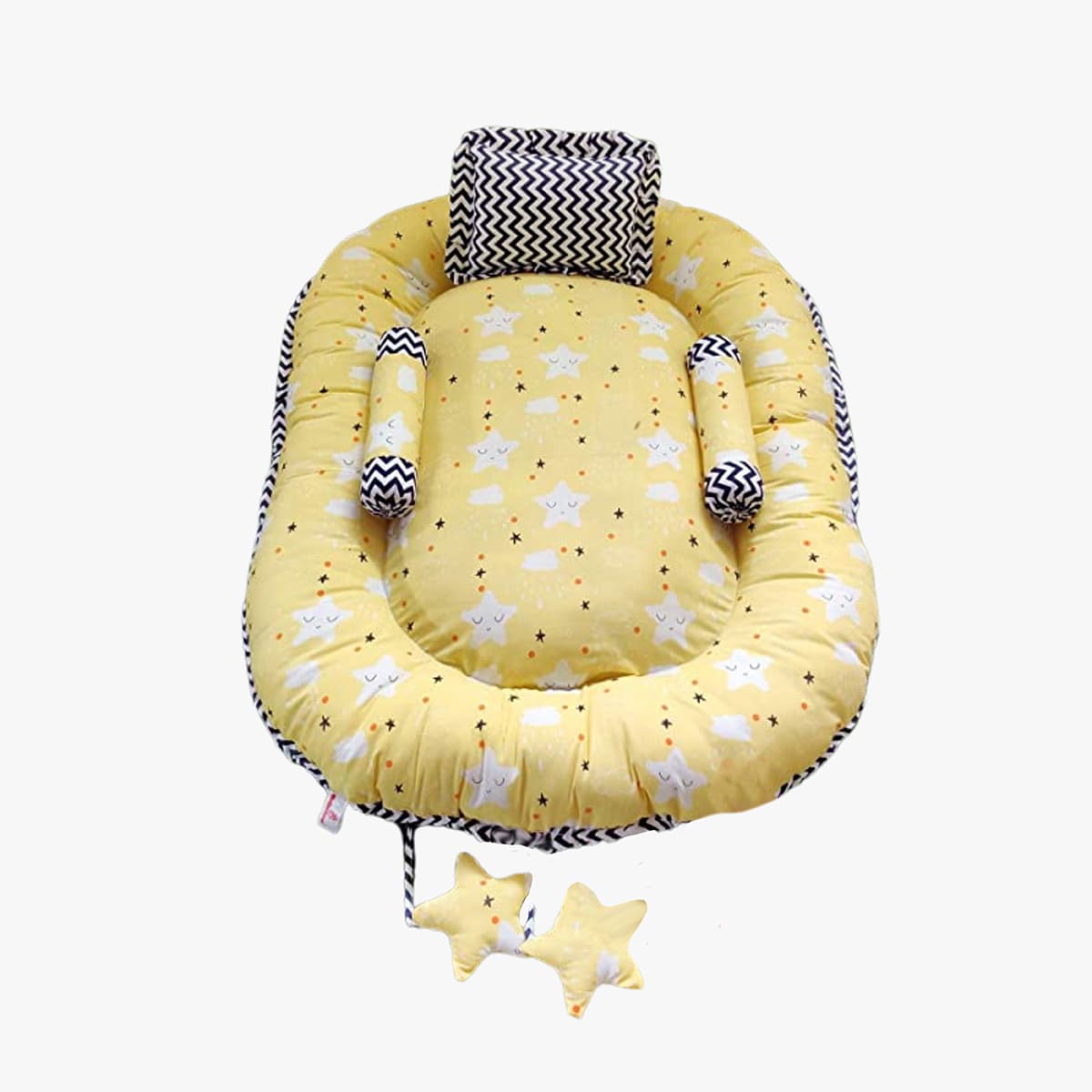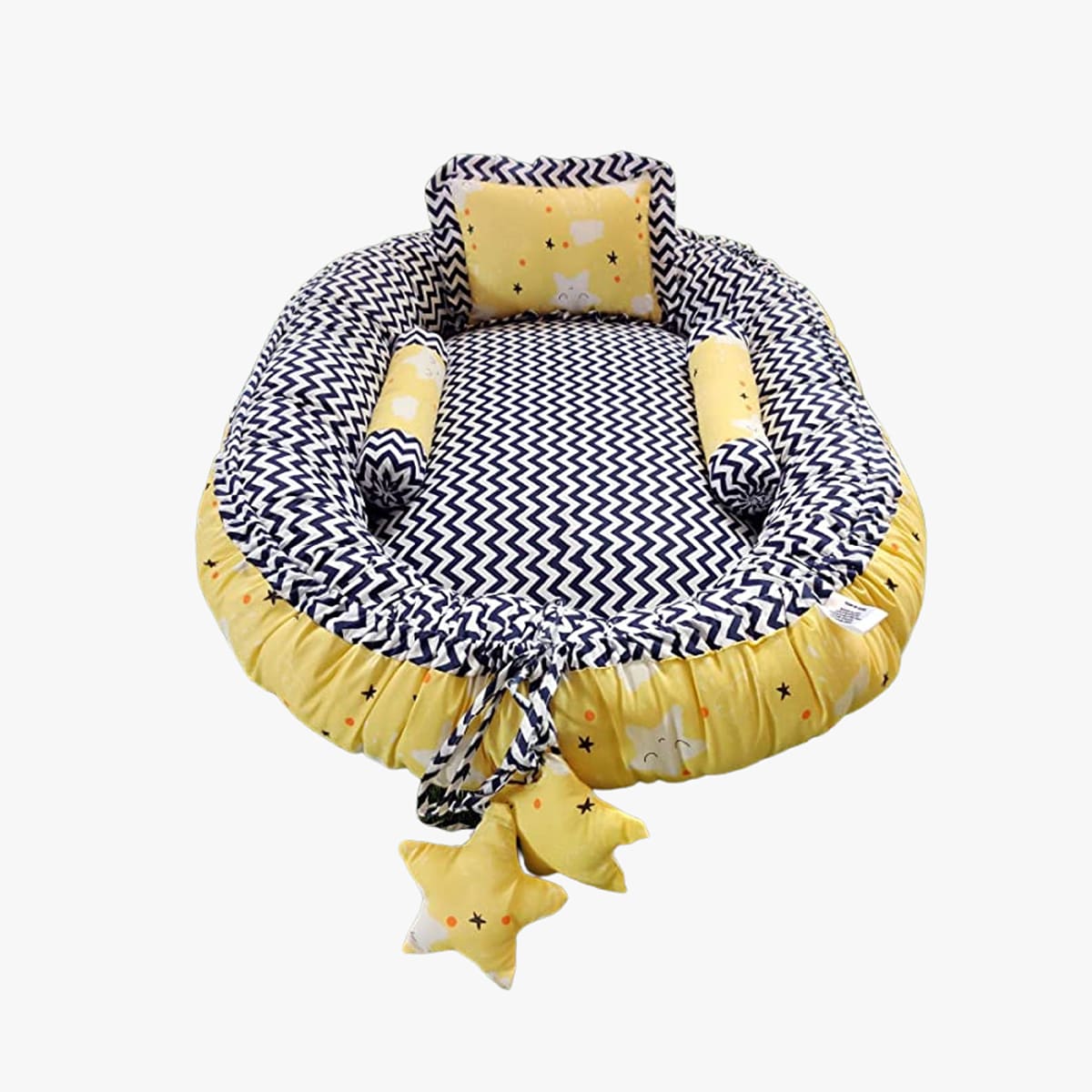 We have made our Online Baby Bedding Set with breathable and soft cotton material to ensure your baby stays comfortable and cozy at all times. Additionally, we fill the bed with virgin INDIAN reputed brand make R-Recron Fibers, which provide a safe and comfortable environment for your baby to sleep in.