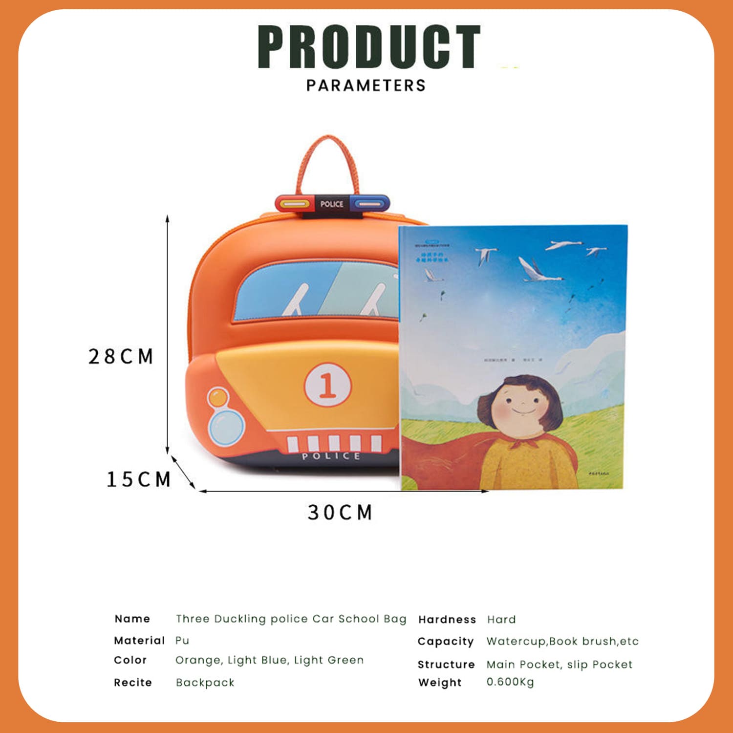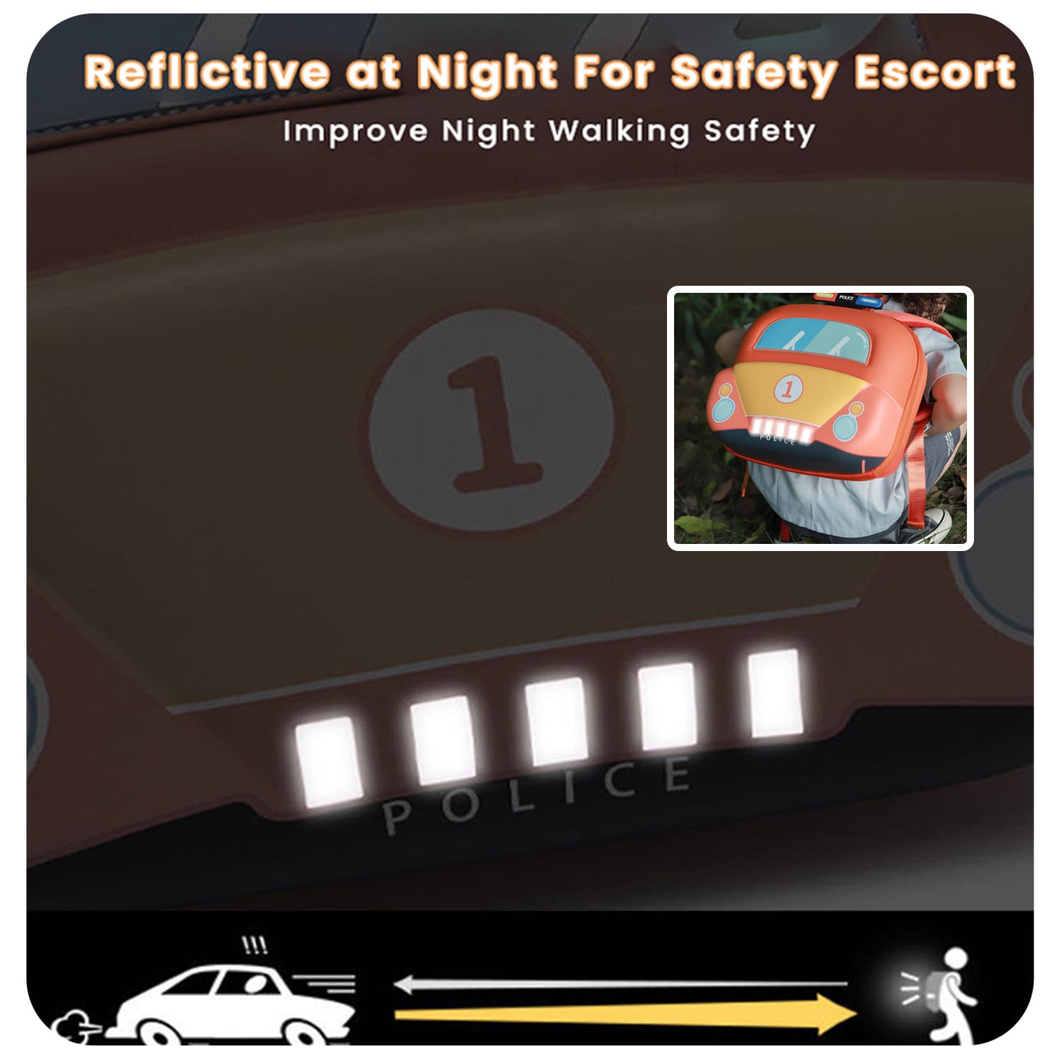 Design: A quirky and unique Toddler Backpack in lovely attractive color options in a Police car theme with windshield and headlights is sure to gather all the attention.