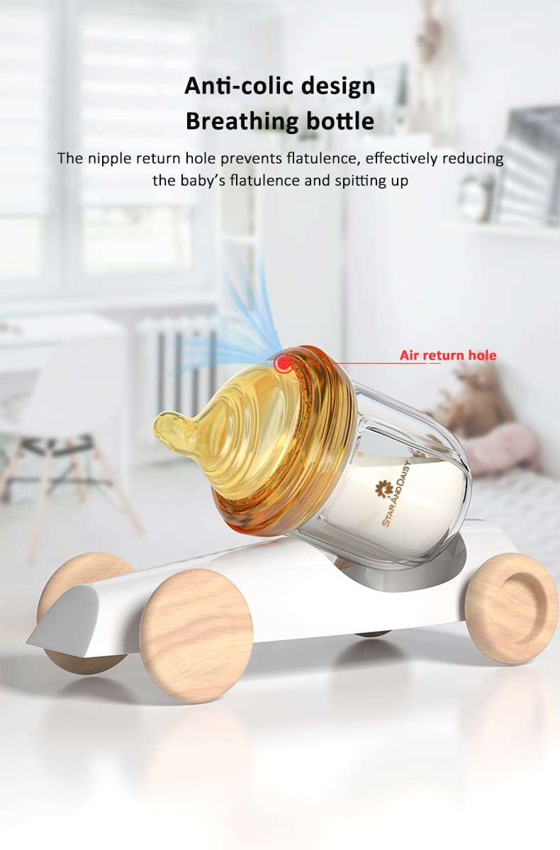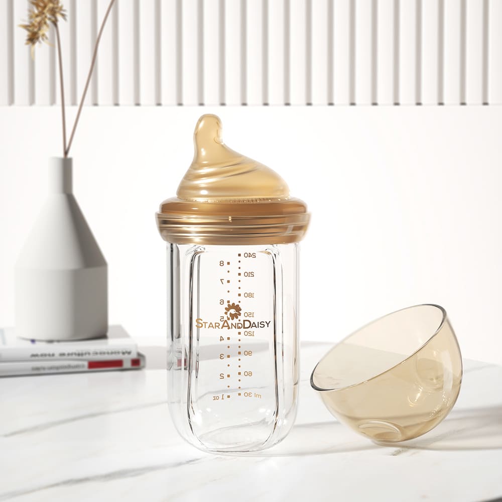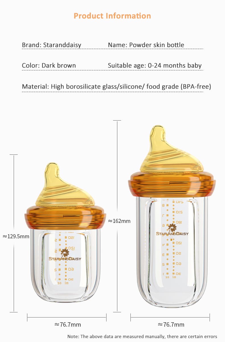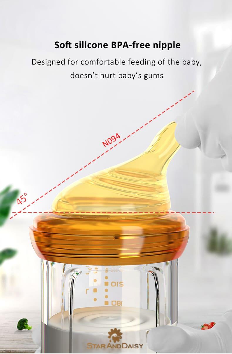 StarAndDaisy Powder Skin Feeding Bottle with With Soft Silicone BPA Free Bottle and Nipple, High-Temperature Resistance, Anti-Flatulence and High Borosilicate Glass, Suitable for 6-12 Months Baby
