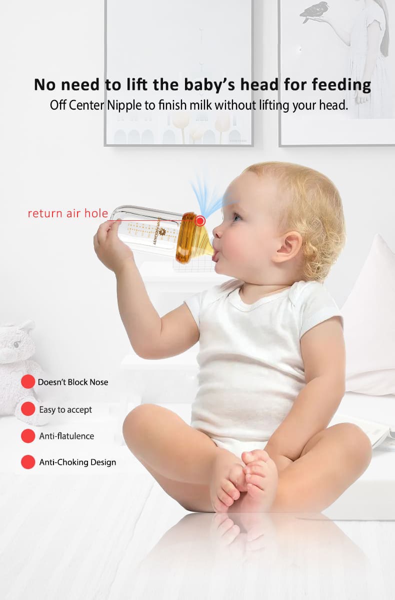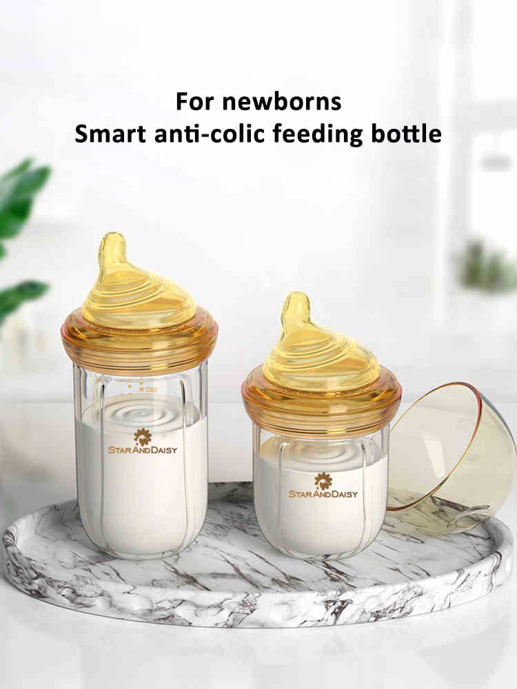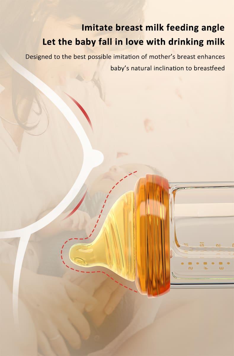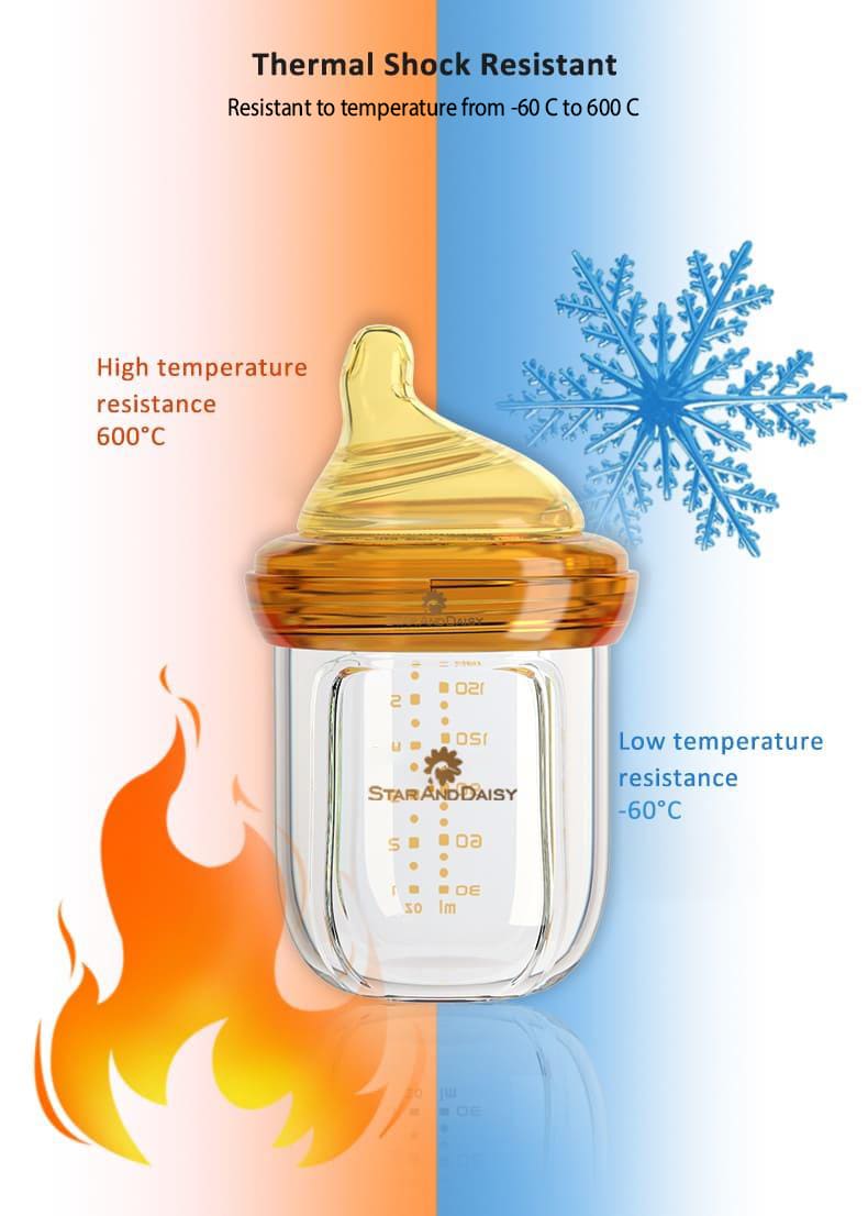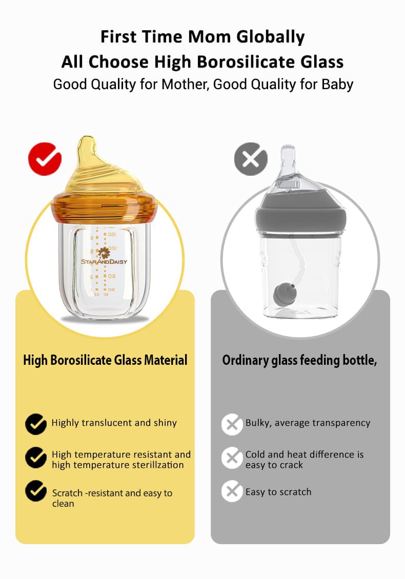 StarAndDaisy Powder Skin Feeding Bottle with With Soft Silicone BPA Free Bottle and Nipple, High-Temperature Resistance, Anti-Flatulence and High Borosilicate Glass, Suitable for 6-12 Months Baby