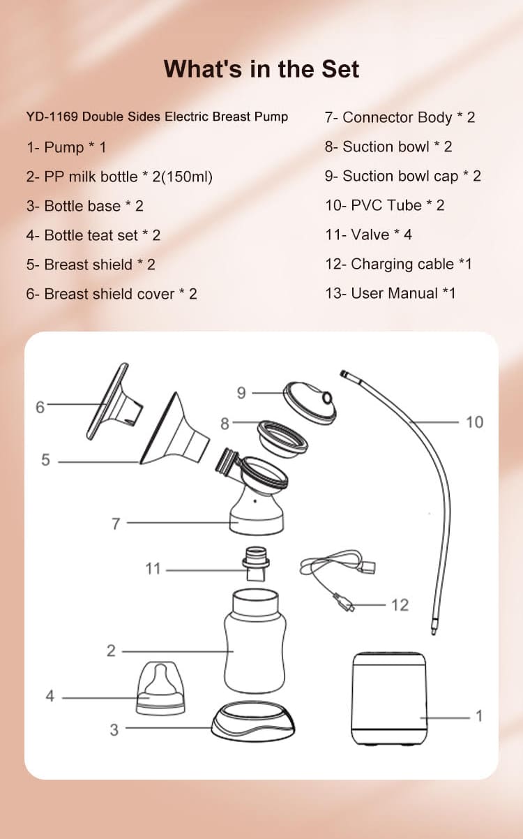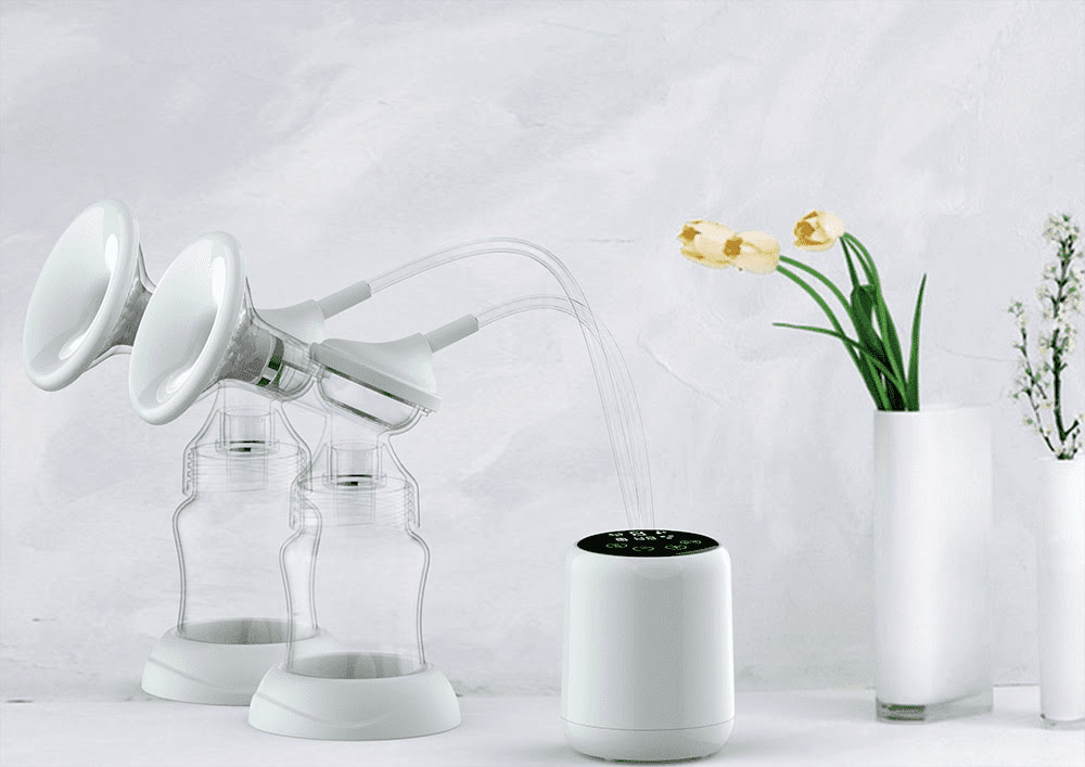 This electric breast pump is a double electric breast pump. The two teats and two suction stems are connected by a connecting stem which allows you to use the same pump as two separate pumps in one. It allows natural expression and comfort while pumping with no extra equipment needed.