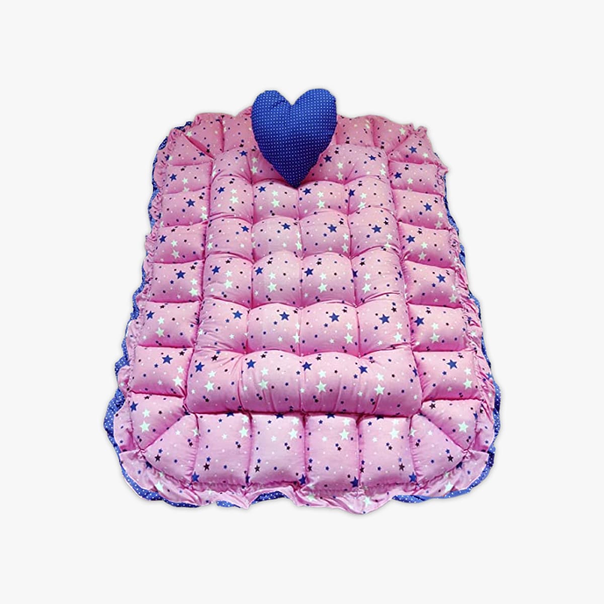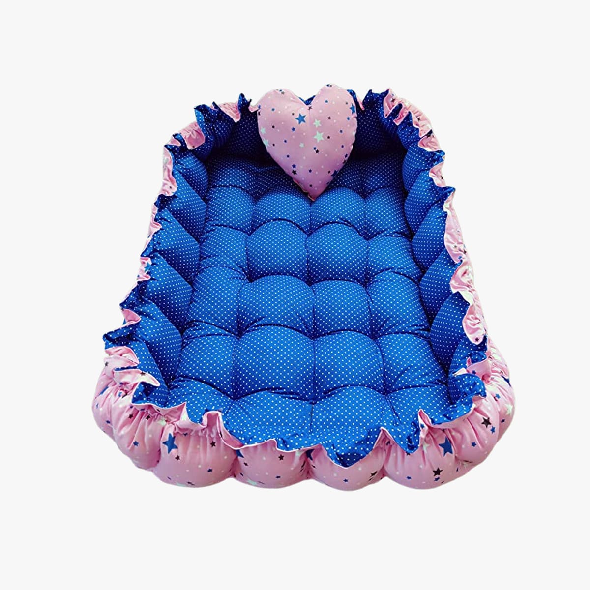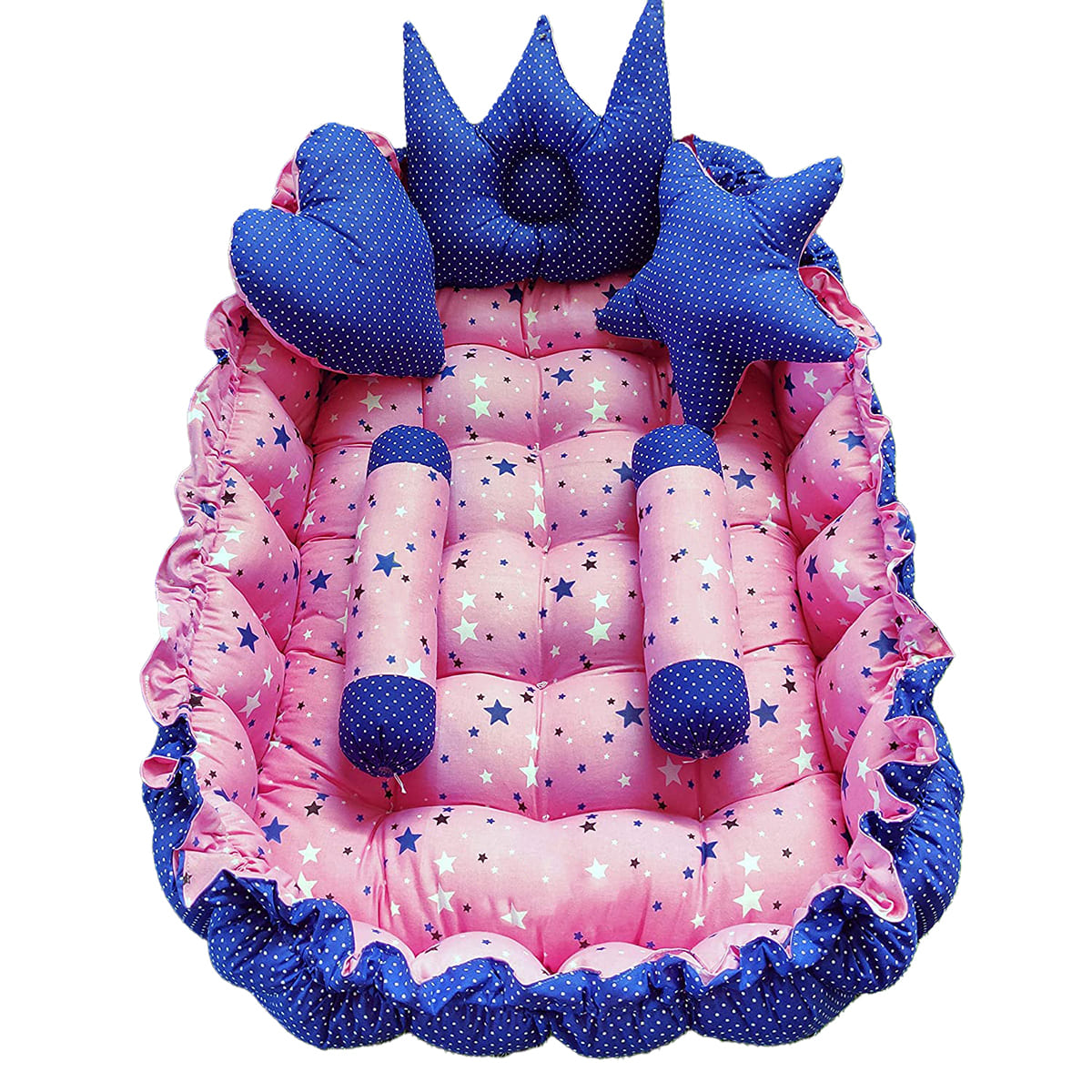 StarAndDaisy Rectangle Baby Tub Bed With 5 Baby Pillow Luxury Baby Mattress Bed Sleeper Bedding Set Co-Sleeper, Rich Cotton Fabric with R-Filled Ultra-Soft Comfortable for Newborn to Toddlers (Pink & Blue)