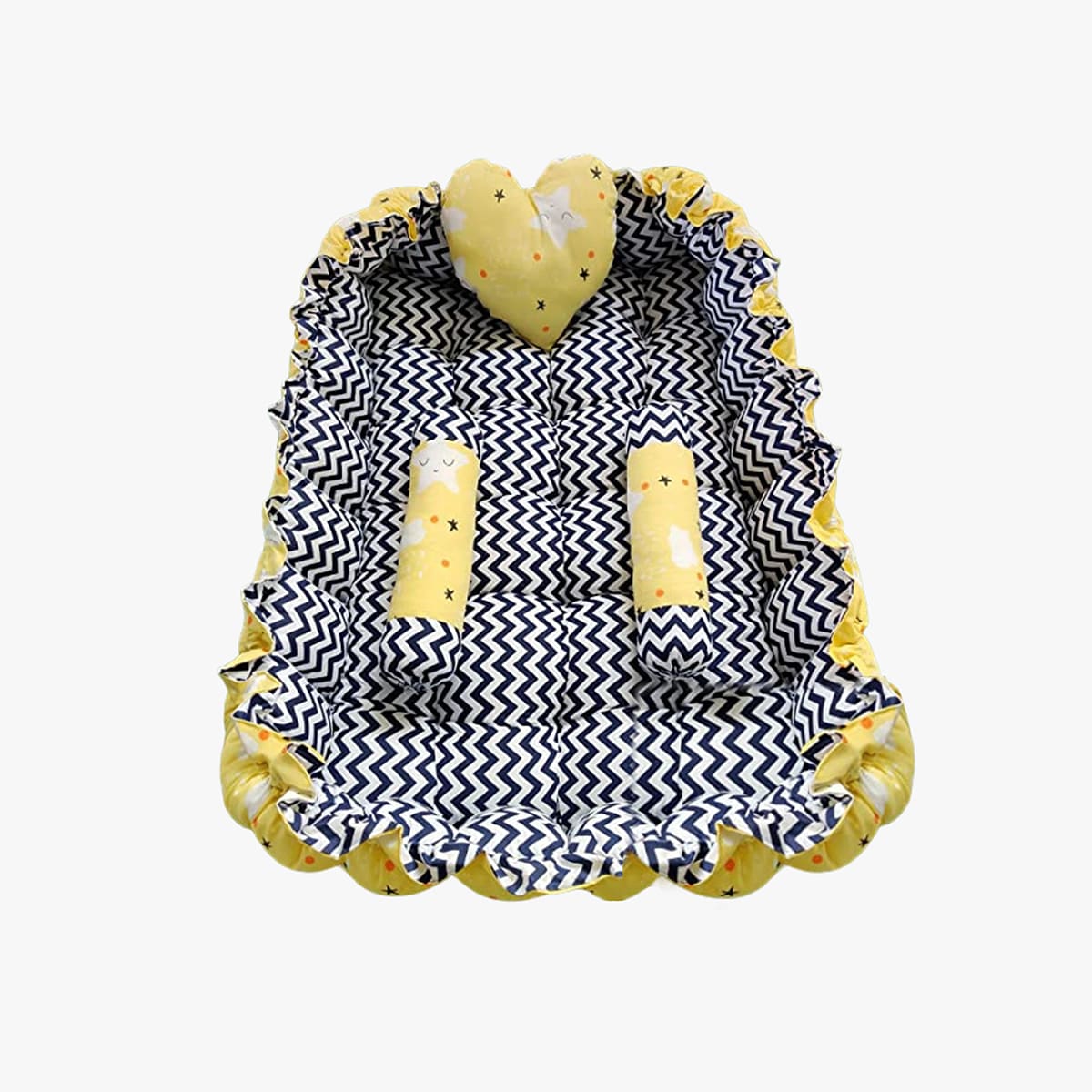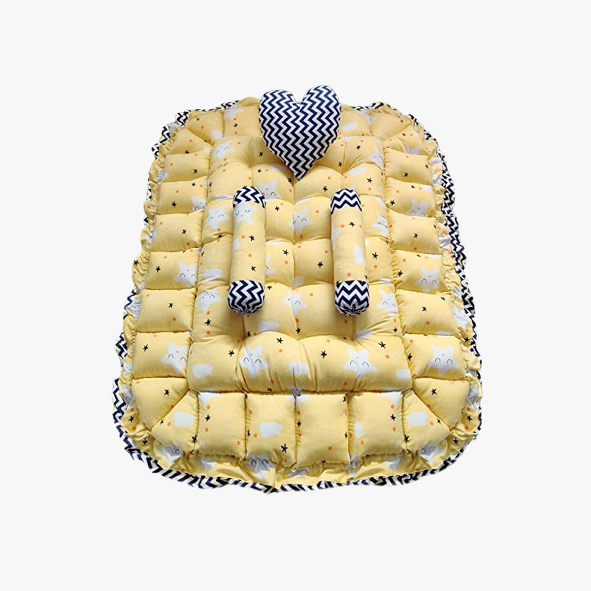 StarAndDaisy Rectangle Baby Tub Bed With 5 Baby Pillows – Infants Sleeping Bedding Set for Newborn to Toddlers – Yellow & Black