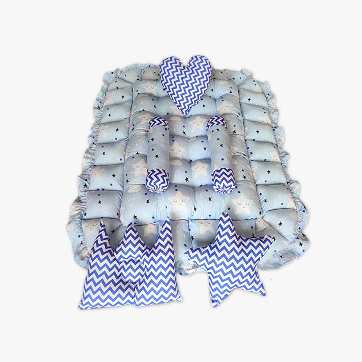 We have made our Bathtub Bed for Infants with breathable and soft cotton material to ensure your baby stays comfortable and cozy at all times. Additionally, we fill the bed with virgin INDIAN reputed brand make R-Recron Fibers, which provide a safe and comfortable environment for your baby to sleep in.